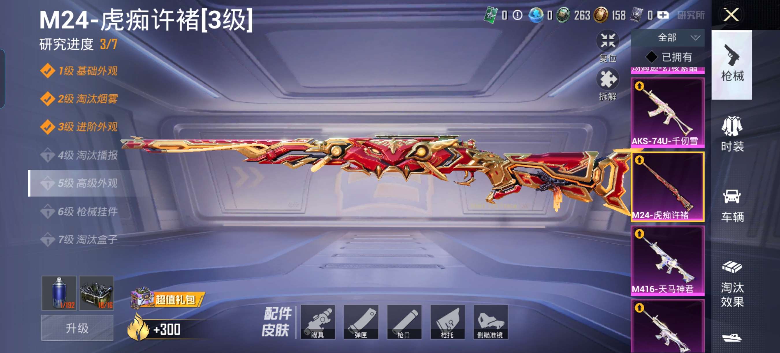24王牌印记-有战神框-1红装-23粉装-19特效枪-5载具-热力值-271套装-358枪皮-10卓越印记-6传奇印记