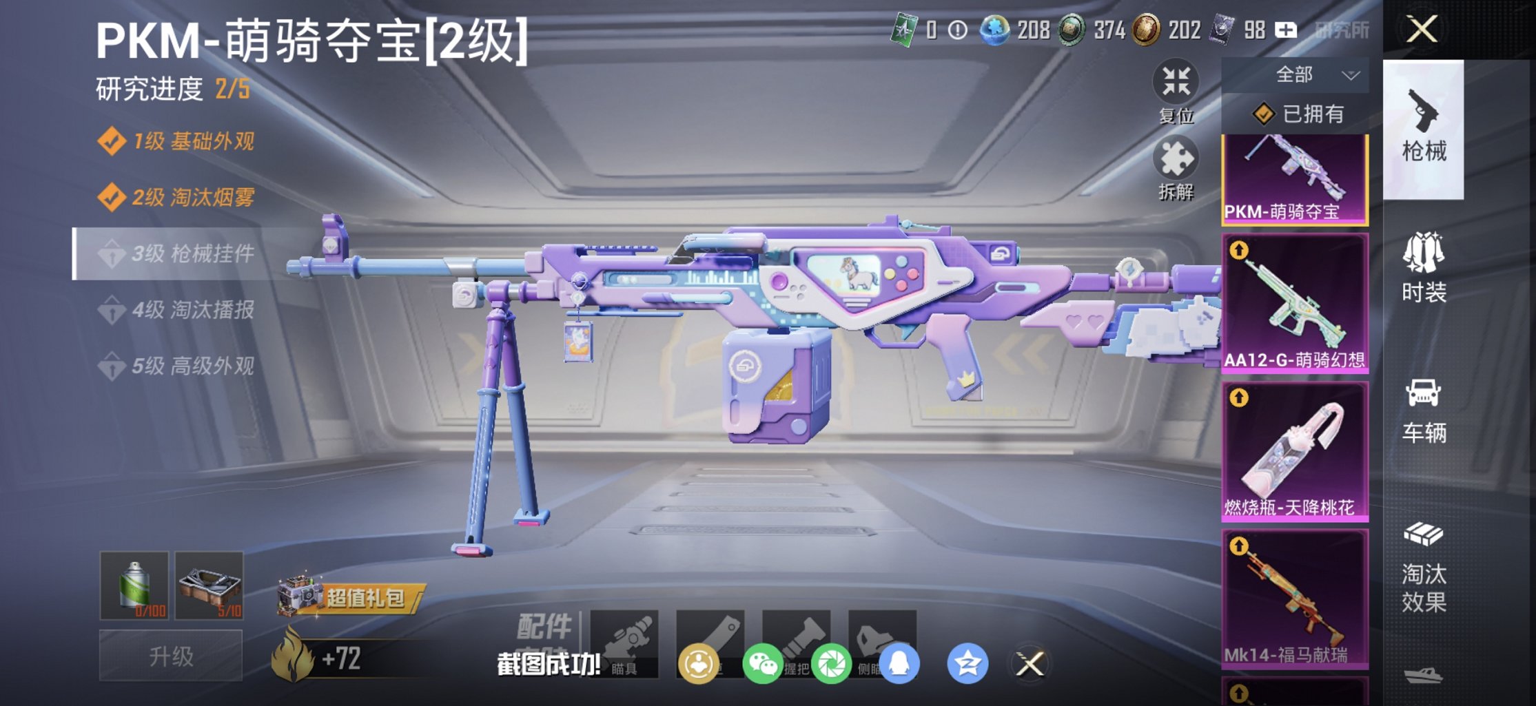 4载具-10粉装-8特效枪-127套装-197枪皮-11王牌印记-不朽星钻Ⅰ-71420热力值