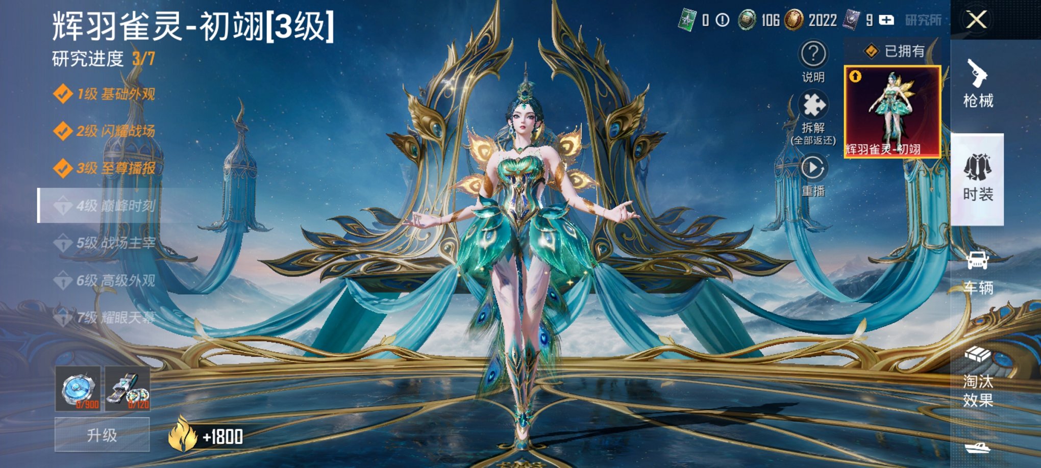 3级红装金鞋11特效枪8粉装2载具