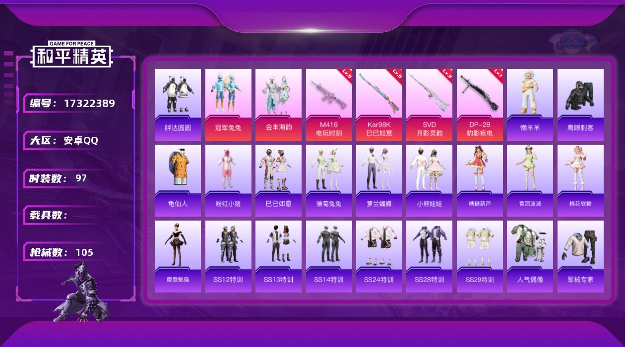 安卓手Q-1载具-1粉装-18套装-30枪皮-0王牌印记-英勇黄金Ⅲ-10147