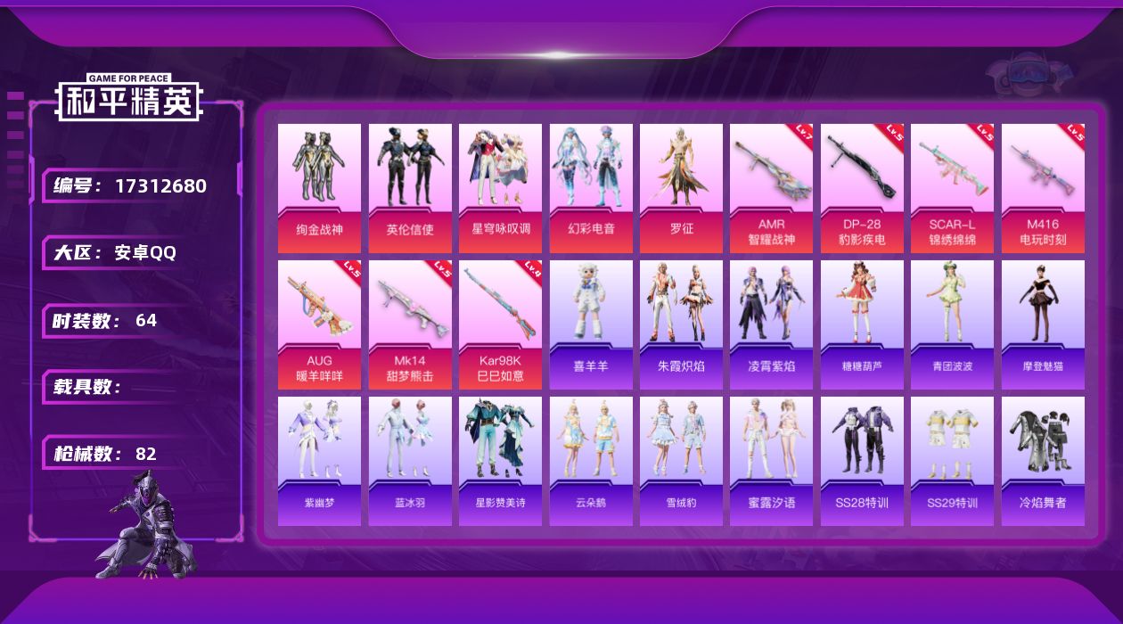安卓手Q-19王牌印记-4红装-14粉装-9特效枪-4载具-热力
