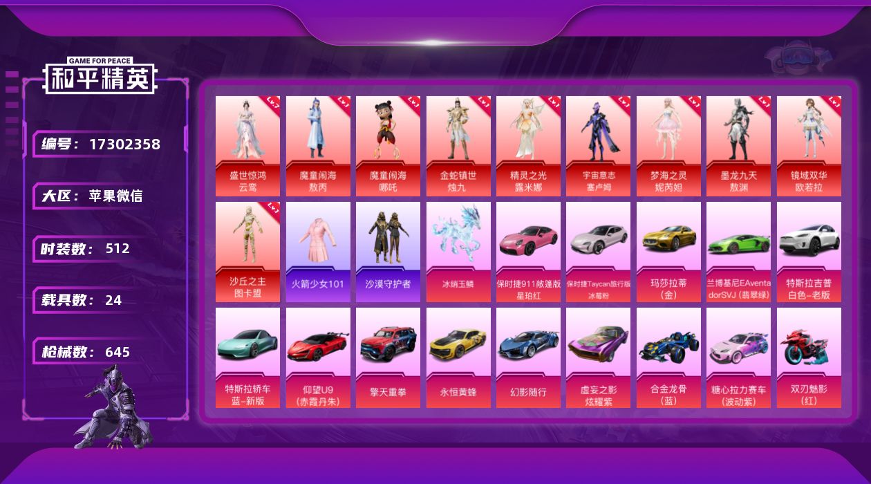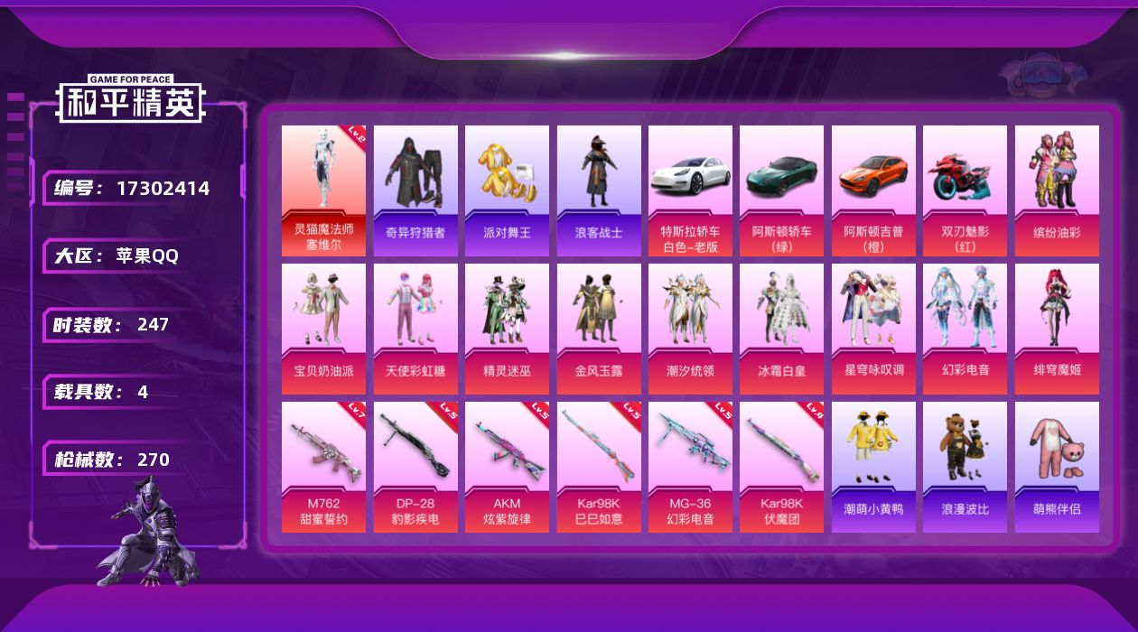 苹果 手Q-4粉装-9特效枪-3载具-5粉色飞行器-5862