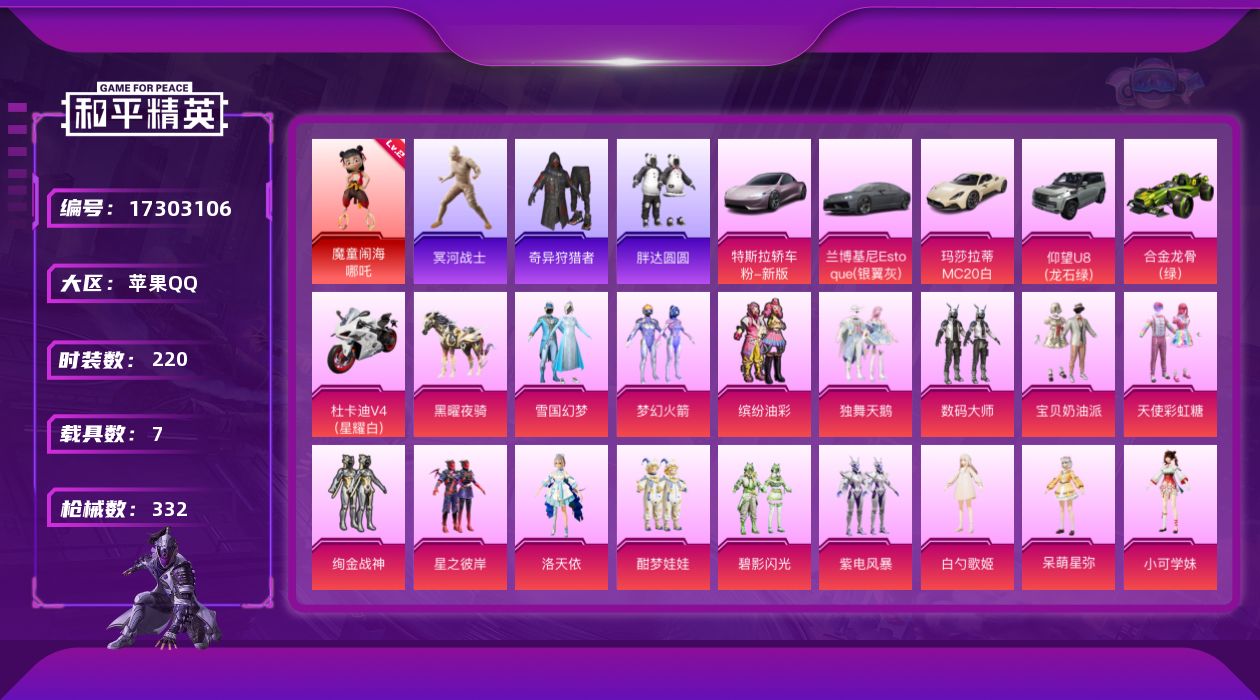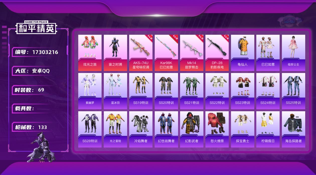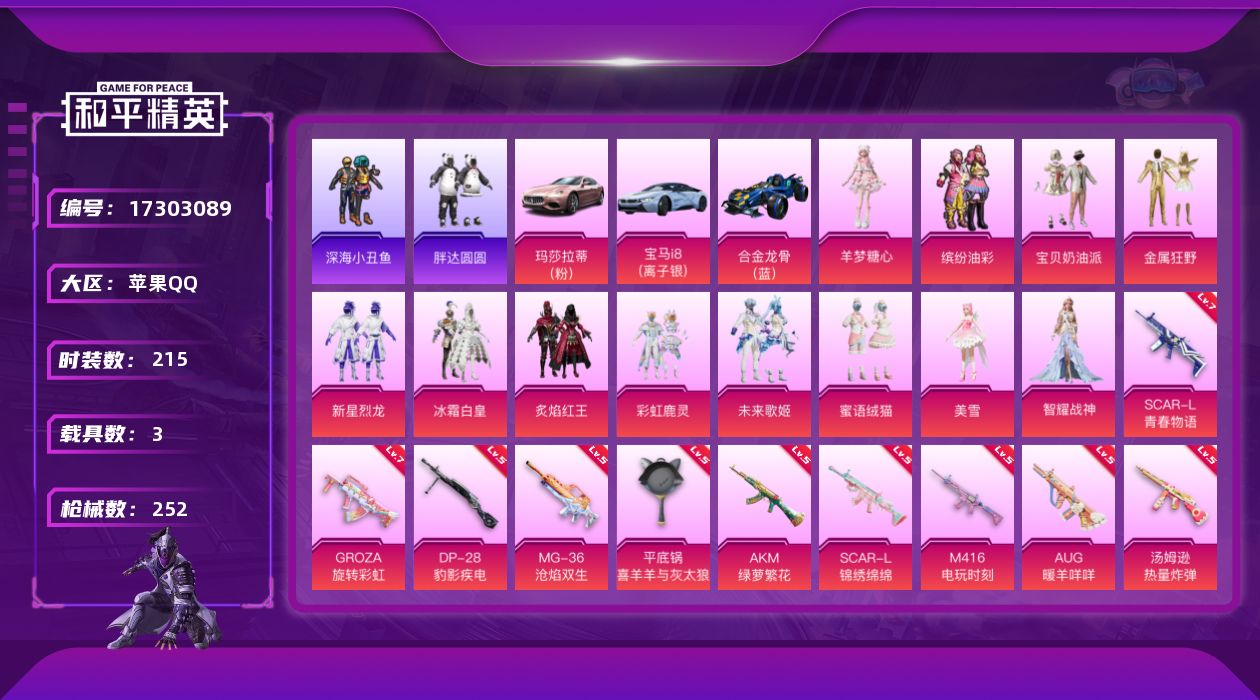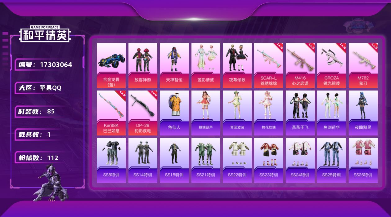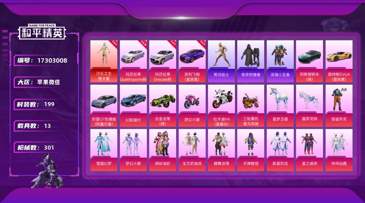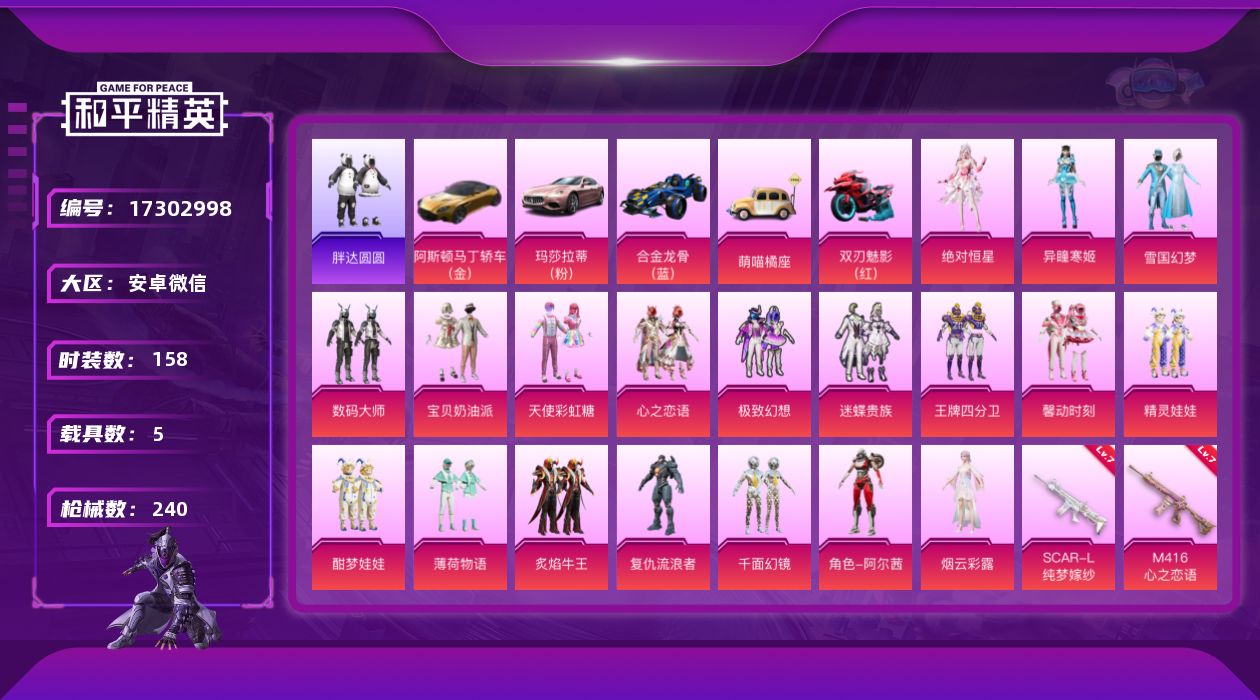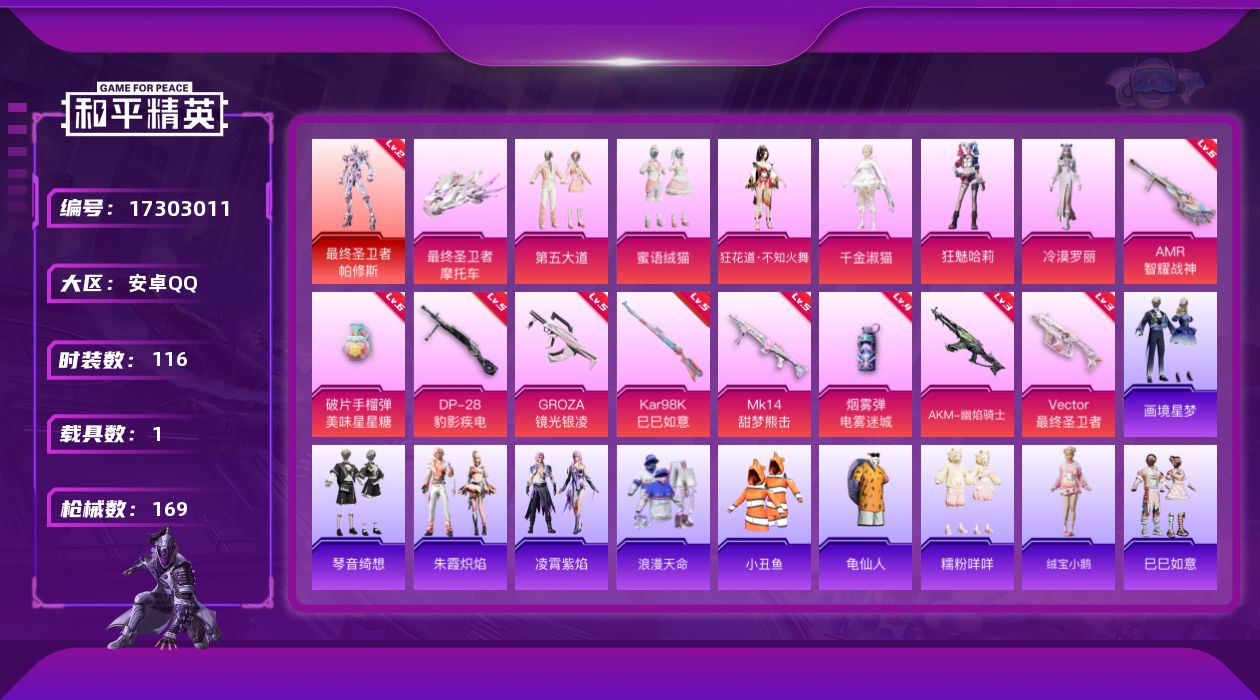 无敌战神框-1神装-27粉装-19特效枪-2载具