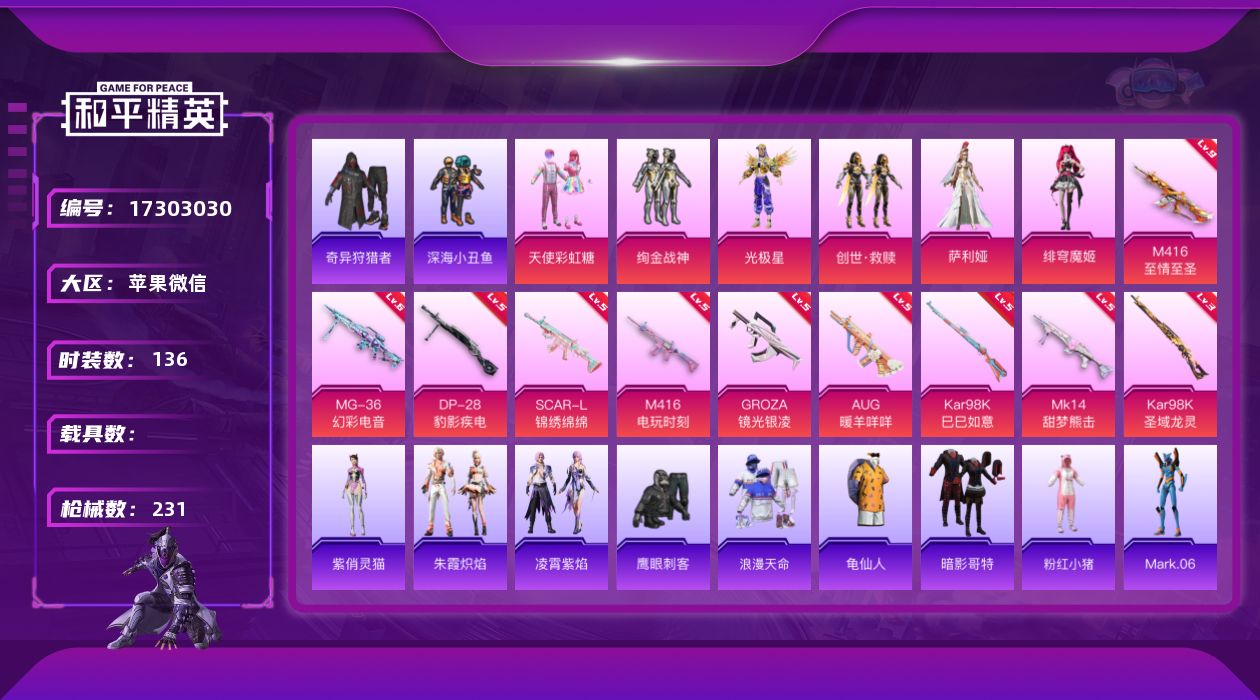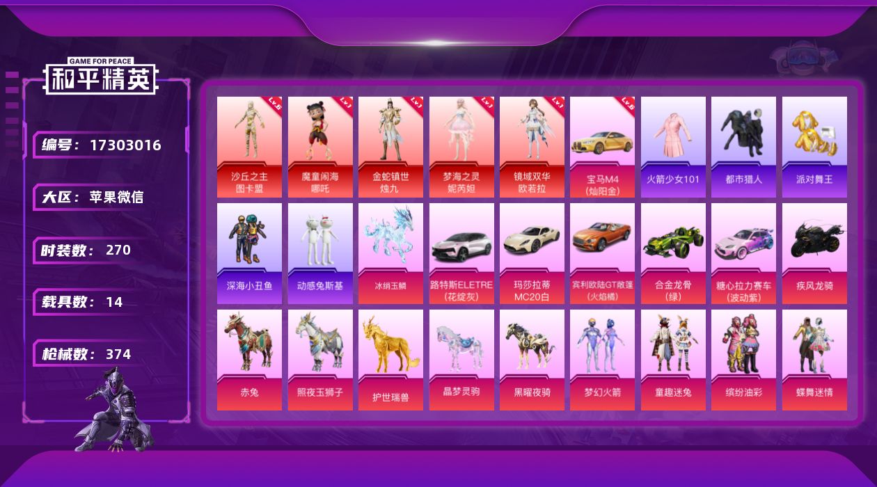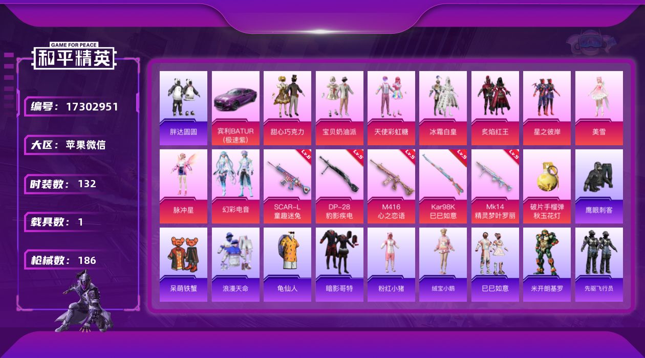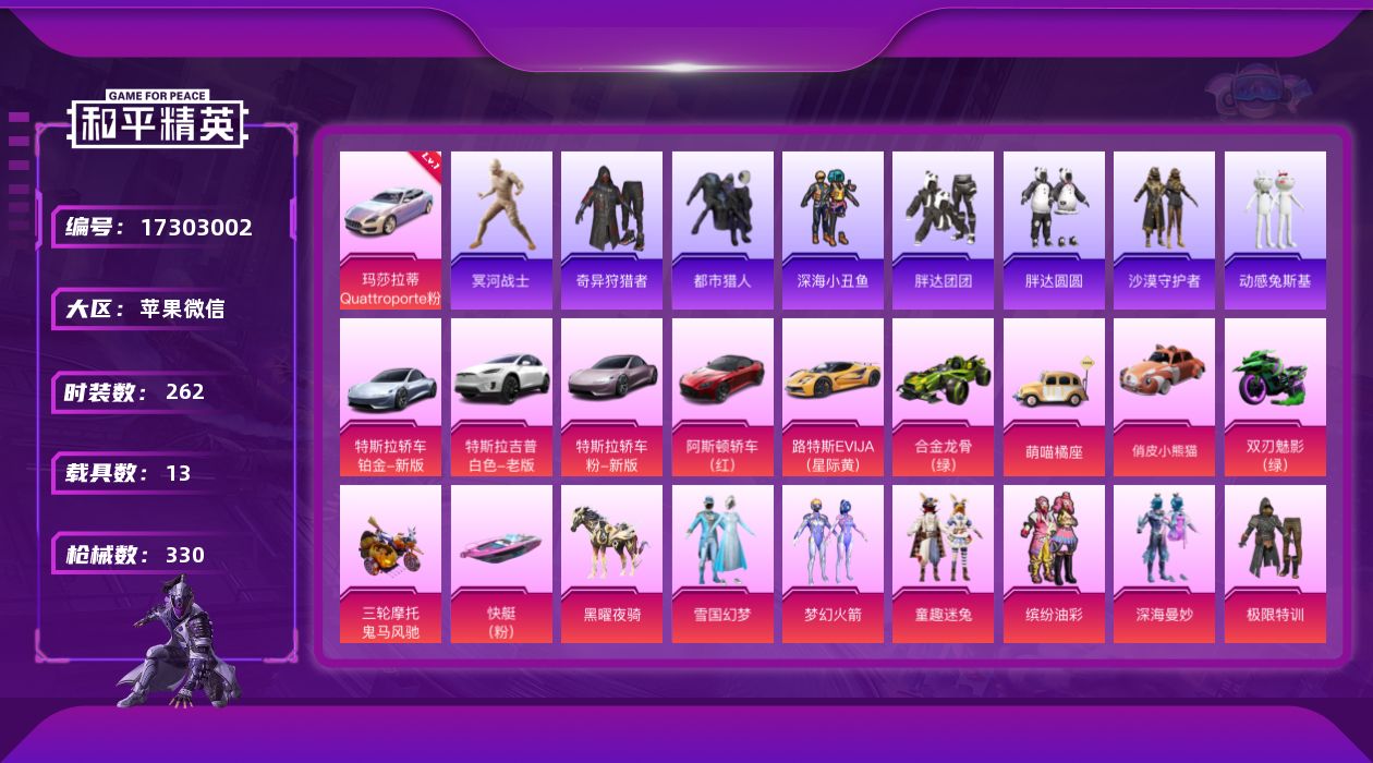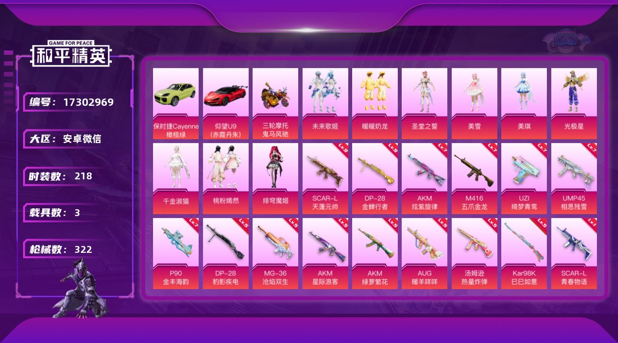 2神装-17粉装-20特效枪-6载具-14粉色飞