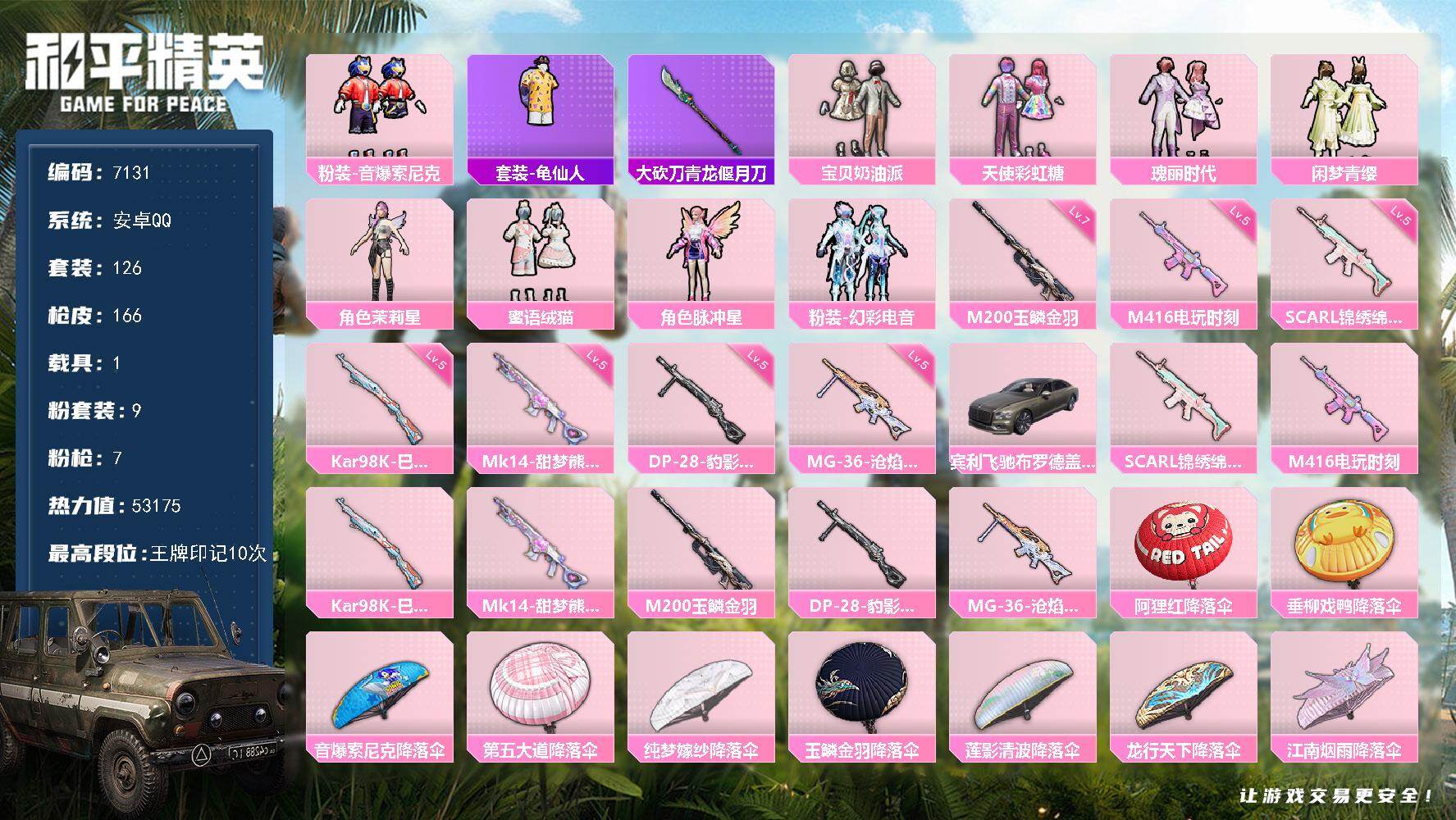 474-【1粉装5特效枪可秒换绑】 安卓Q区-21553热力值--37套装-94
