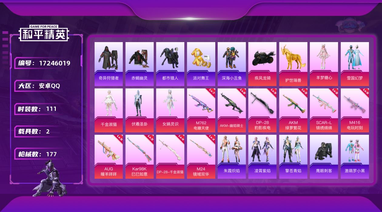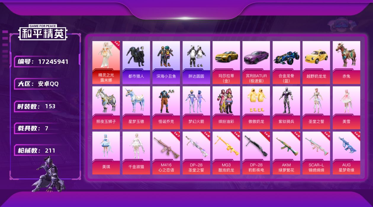 【5红装5级图卡盟7载具11特效枪7粉装素材号 秒换绑不用等】 安卓Q区-136
