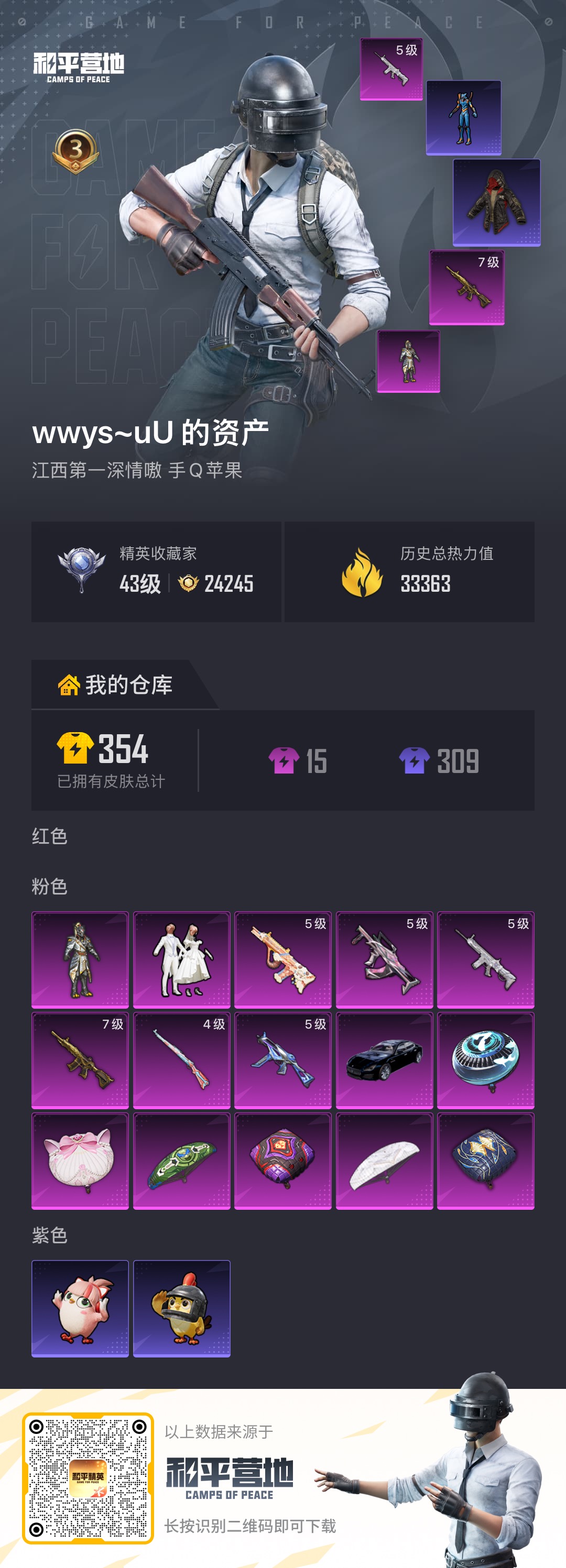 15粉装-22特效枪-5载具-5粉色飞行器-115421热力值-17王牌印记-240套装-277枪皮
