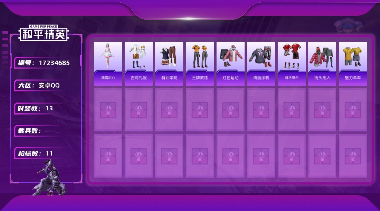 8粉装-11特效枪-0载具-3粉色飞行器-78383热力值-12王牌印记-162套装-248枪皮