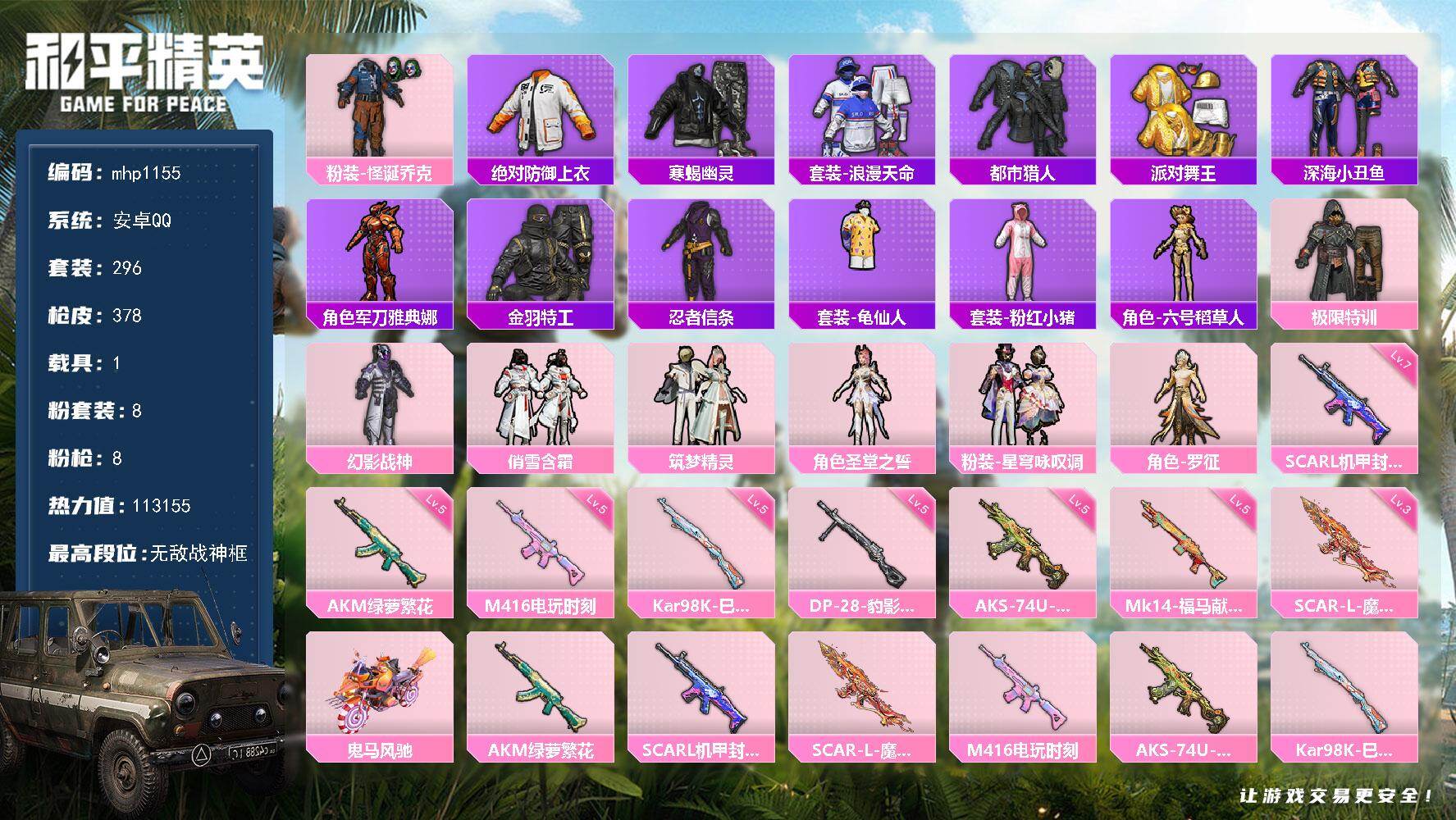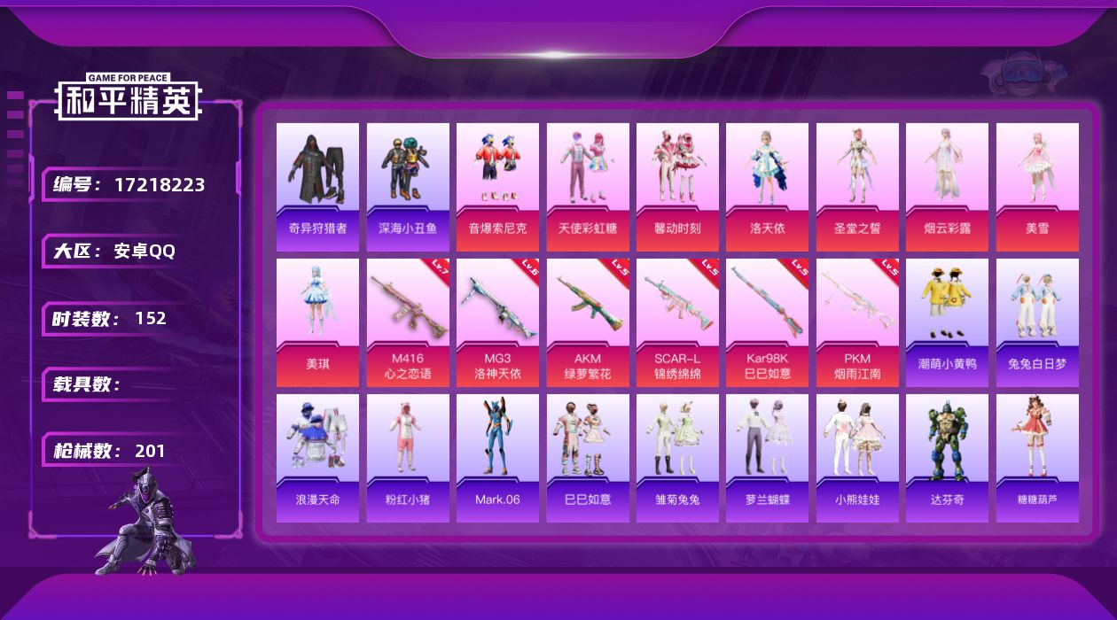 2粉装-6特效枪-0载具-2粉色飞行器-31788热力值-5王牌印记-97套装-120枪皮