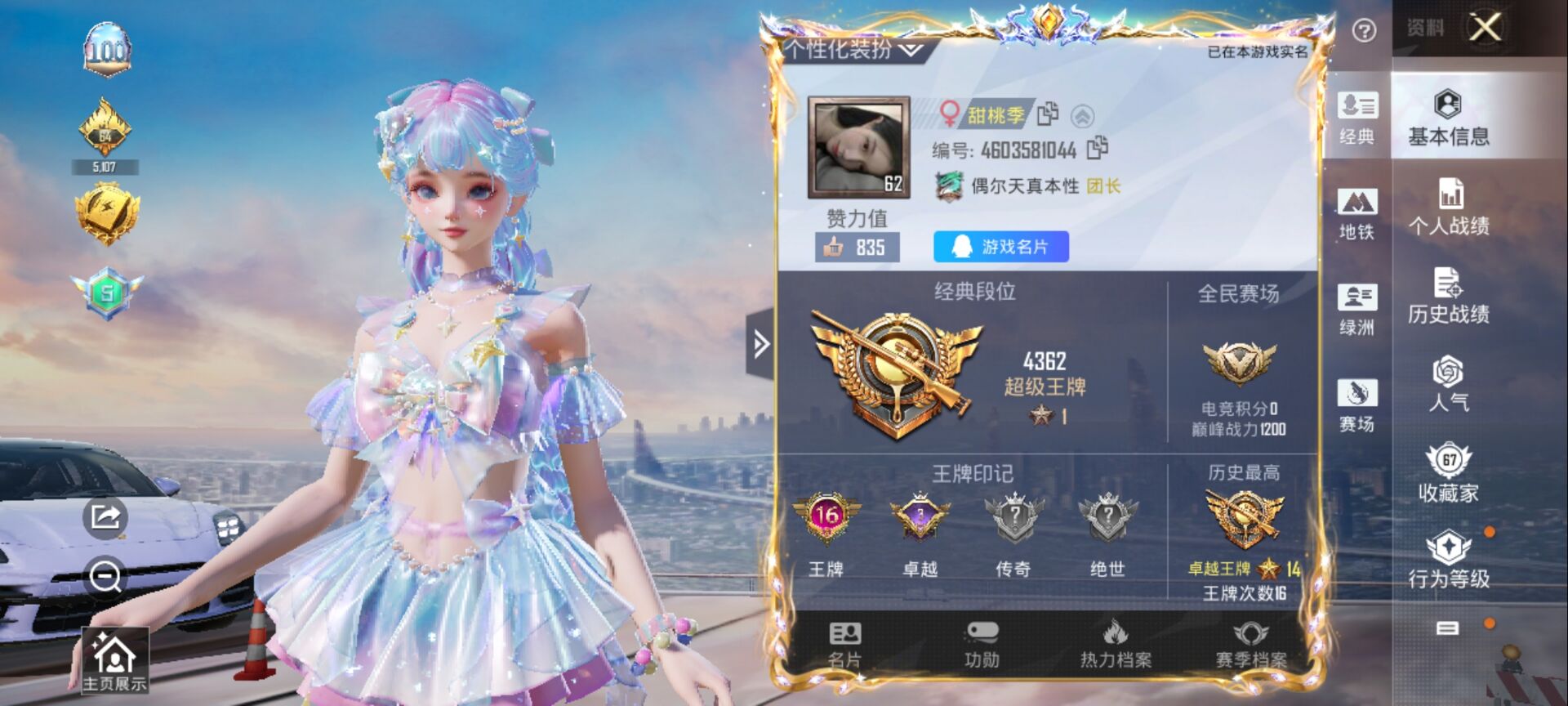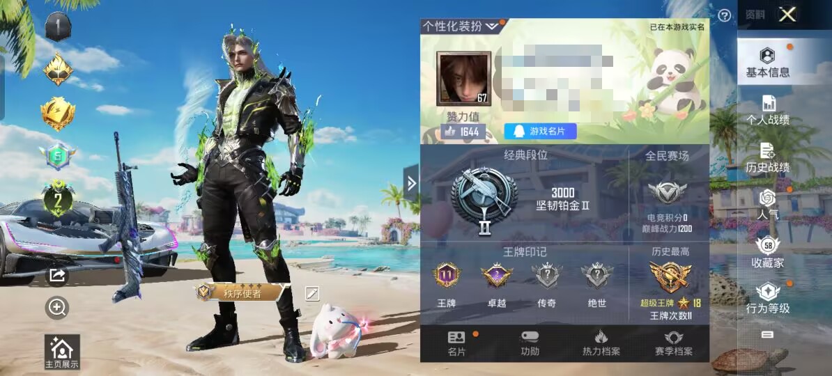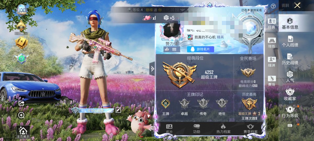 0粉装-4特效枪-0载具-0粉色飞行器-11658热力值-1王牌印记-39套装-46枪皮