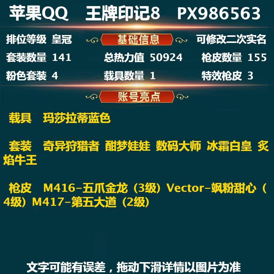 荣耀皇冠Ⅳ-50924热力值 8王牌印记 141套装 155枪皮(安卓区封号十年 不能转区)