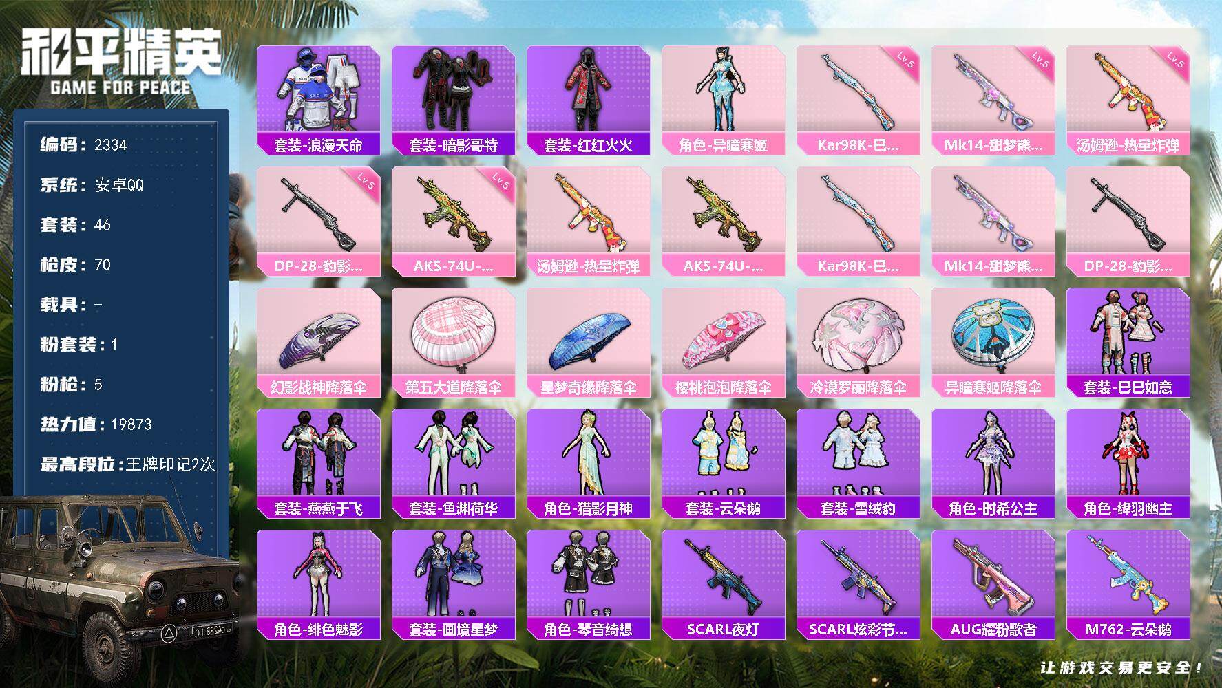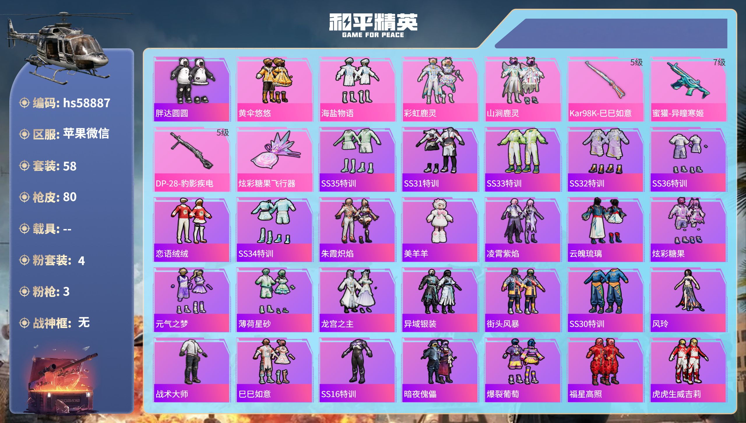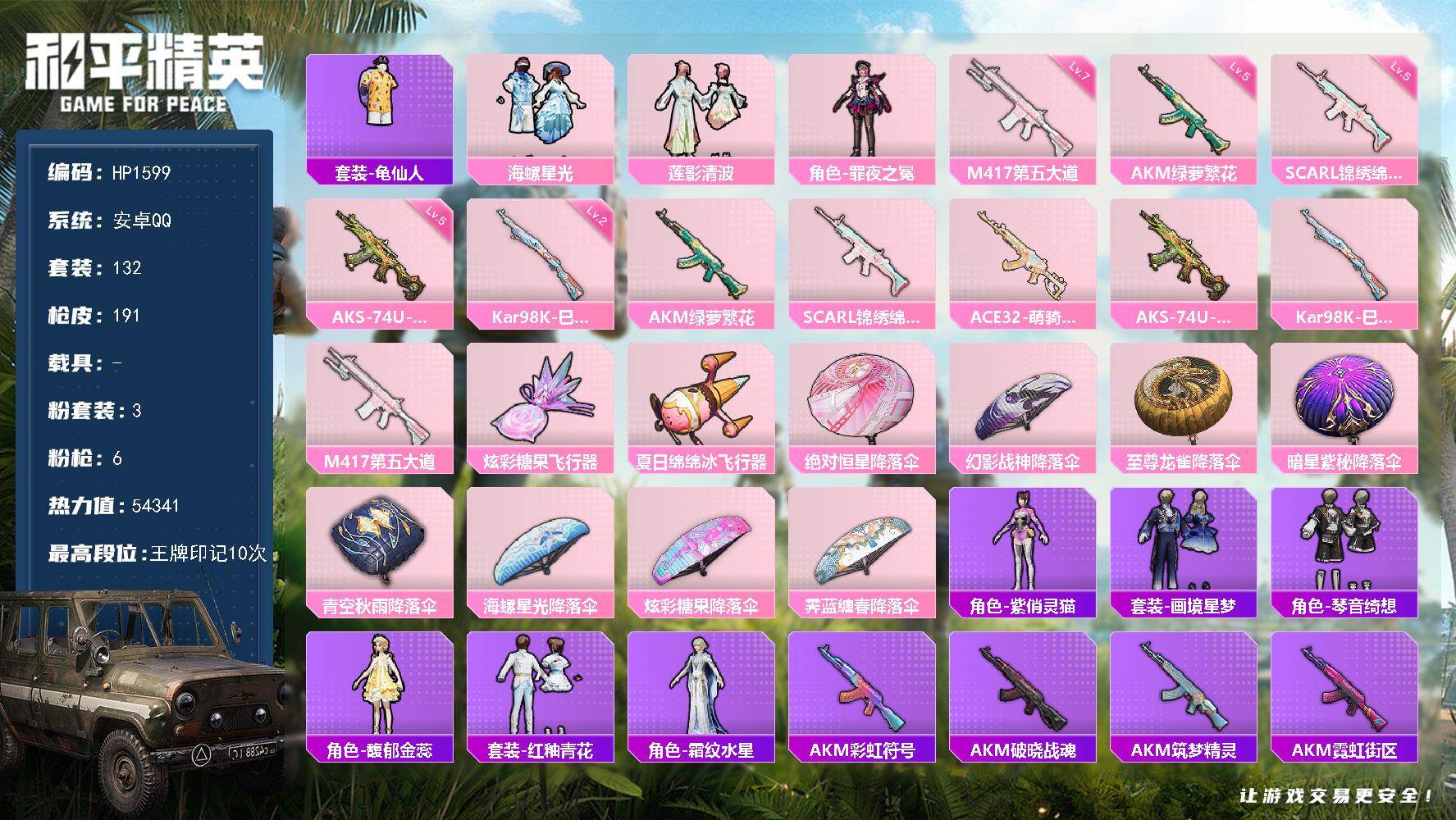 6粉装-3特效枪-1粉色飞行器-40213热力值-5王牌印记-98套装-140枪皮