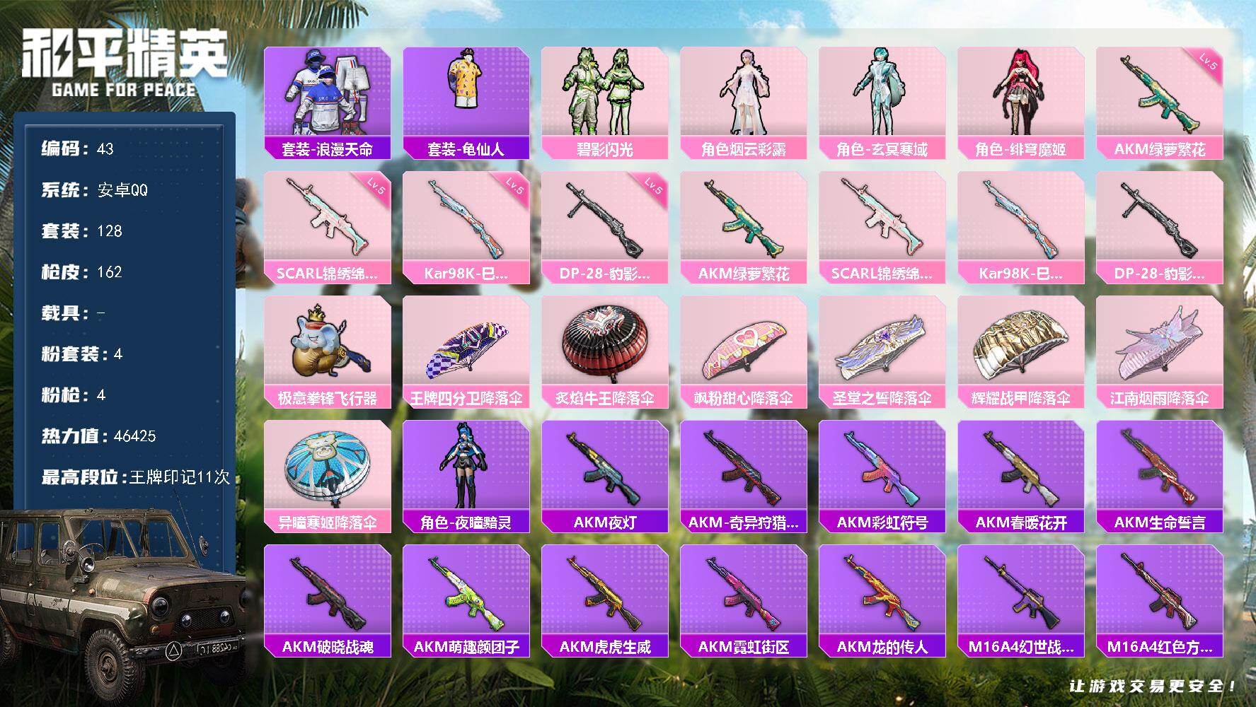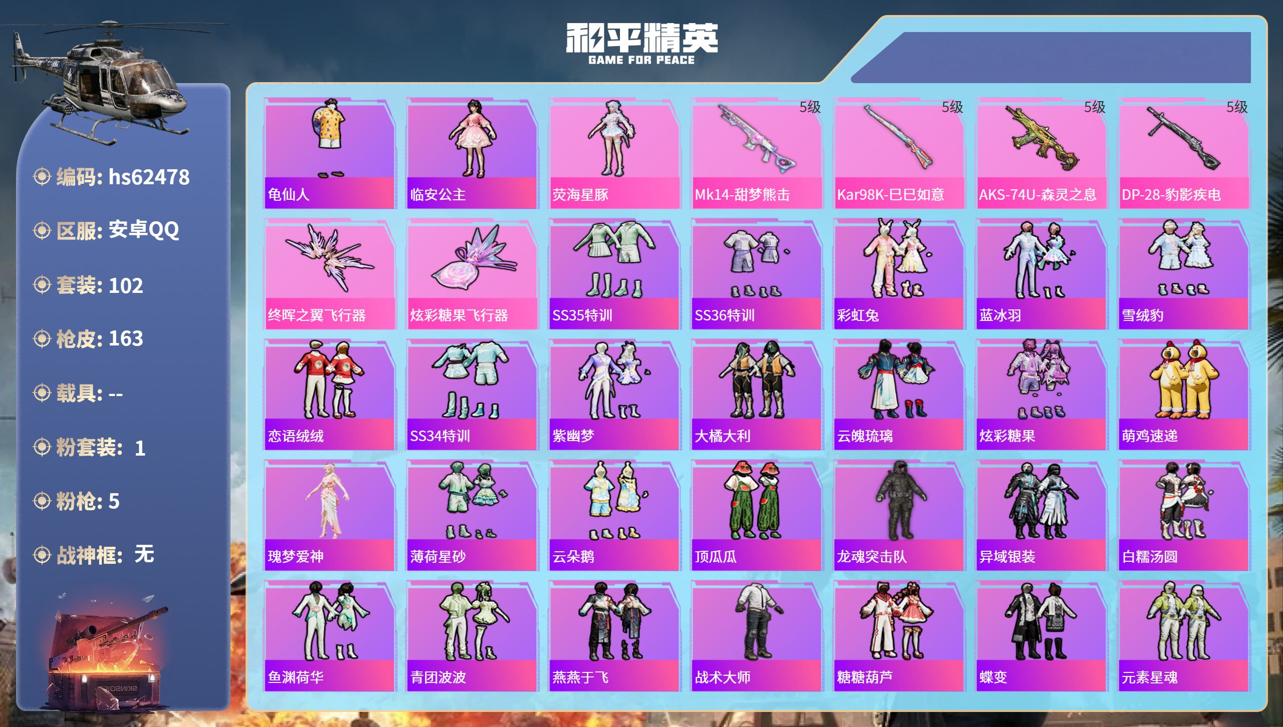0王牌印记-1粉装-5特效枪-43245热力值-102套装-163枪皮