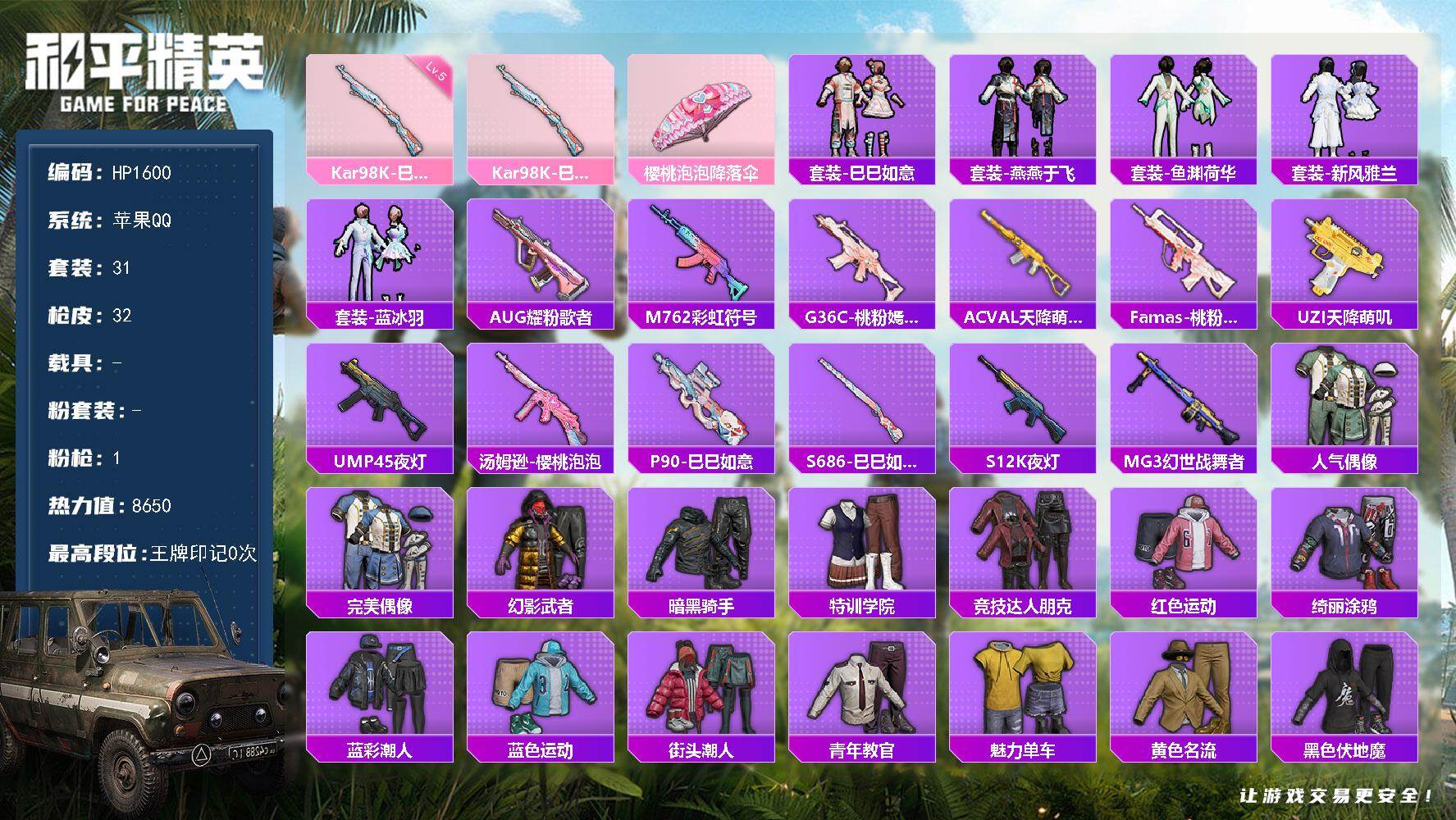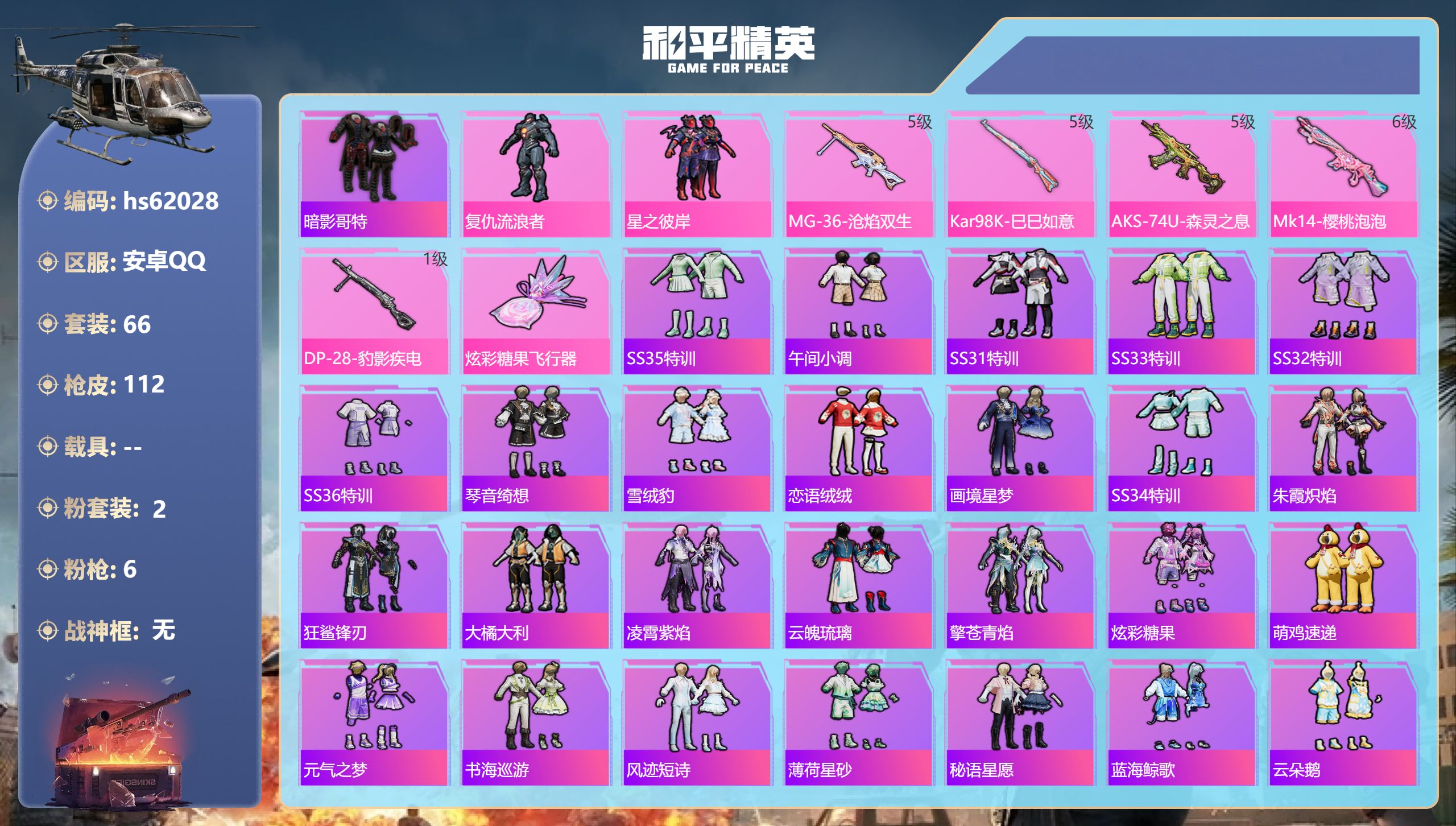 3王牌印记-2粉装-6特效枪-30314热力值-66套装-112枪皮-2卓越印记-1传奇印记