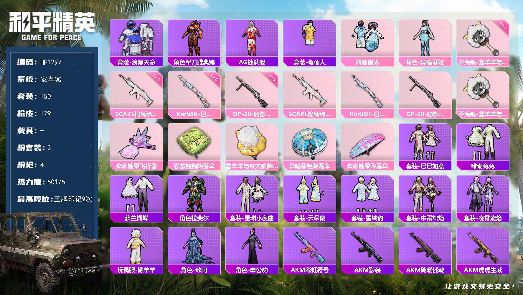 150套装/枪械4/装备178/战备114/王牌印记9/热力值50175/