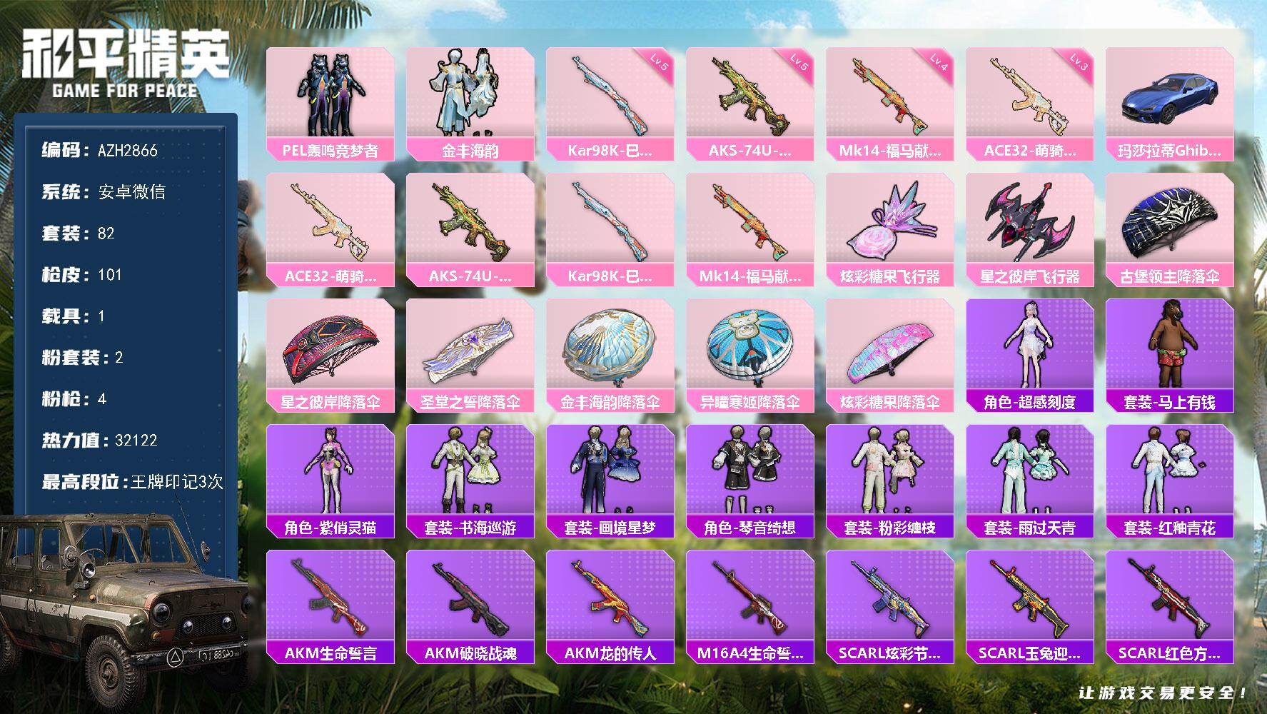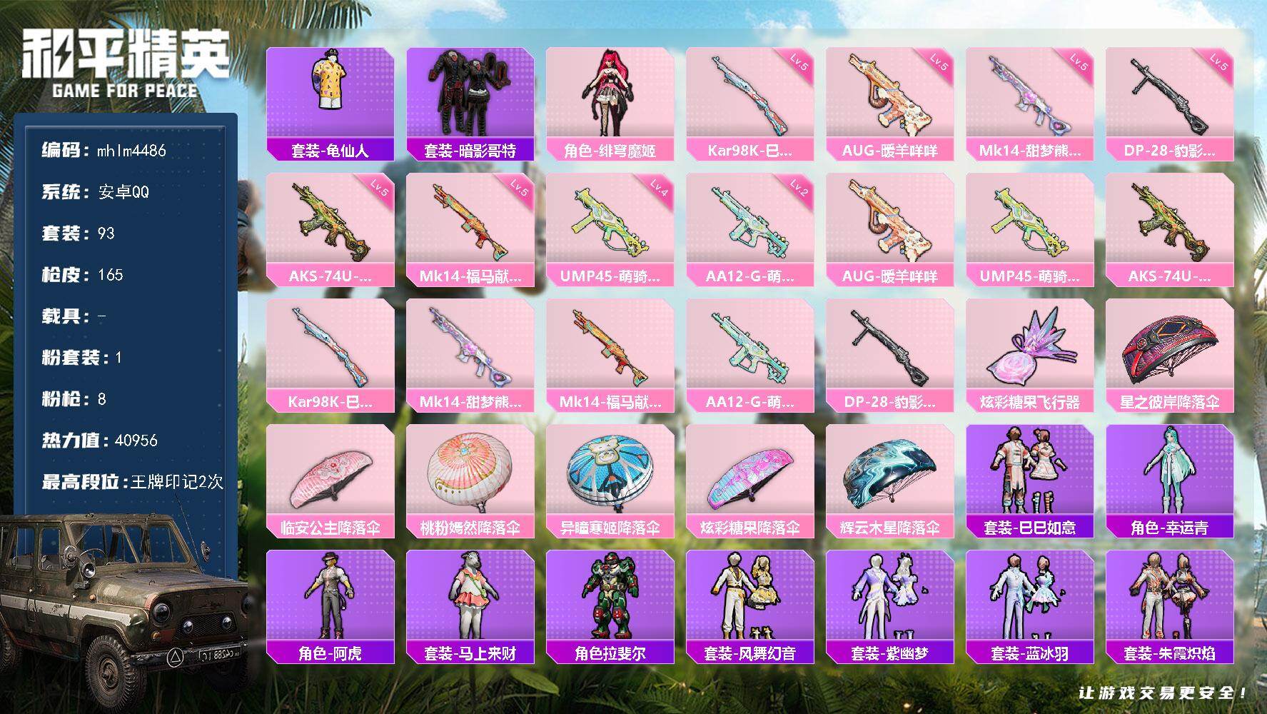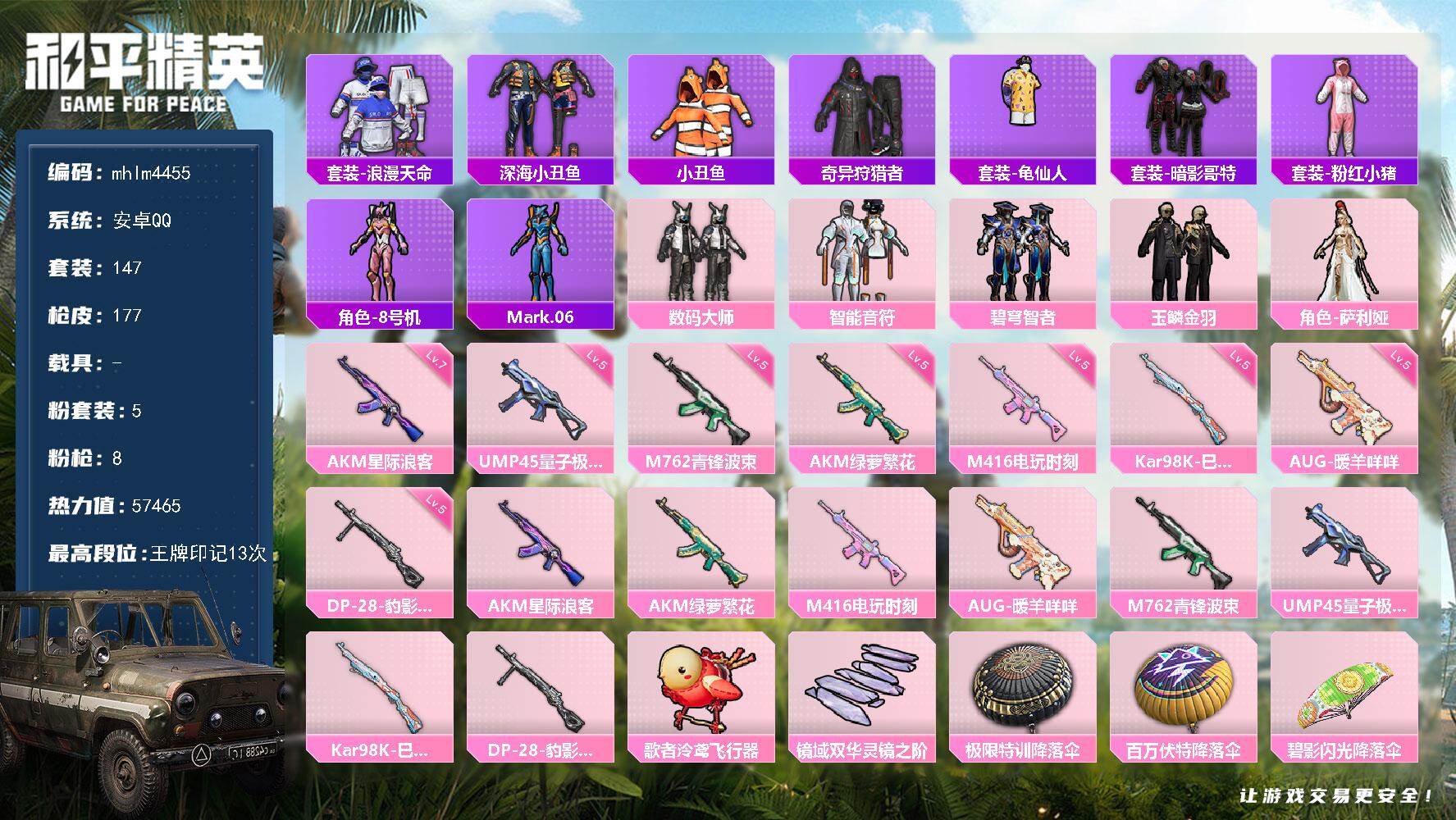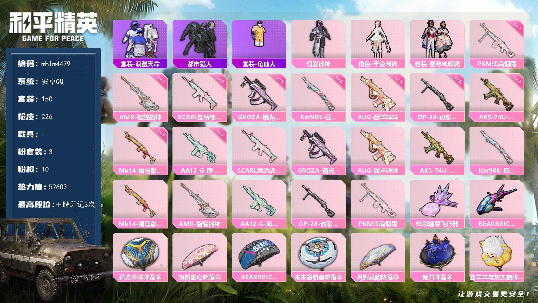 【mhlm4479】安卓 手Q-3粉装-10特效枪-0载具-2粉色飞行器-59