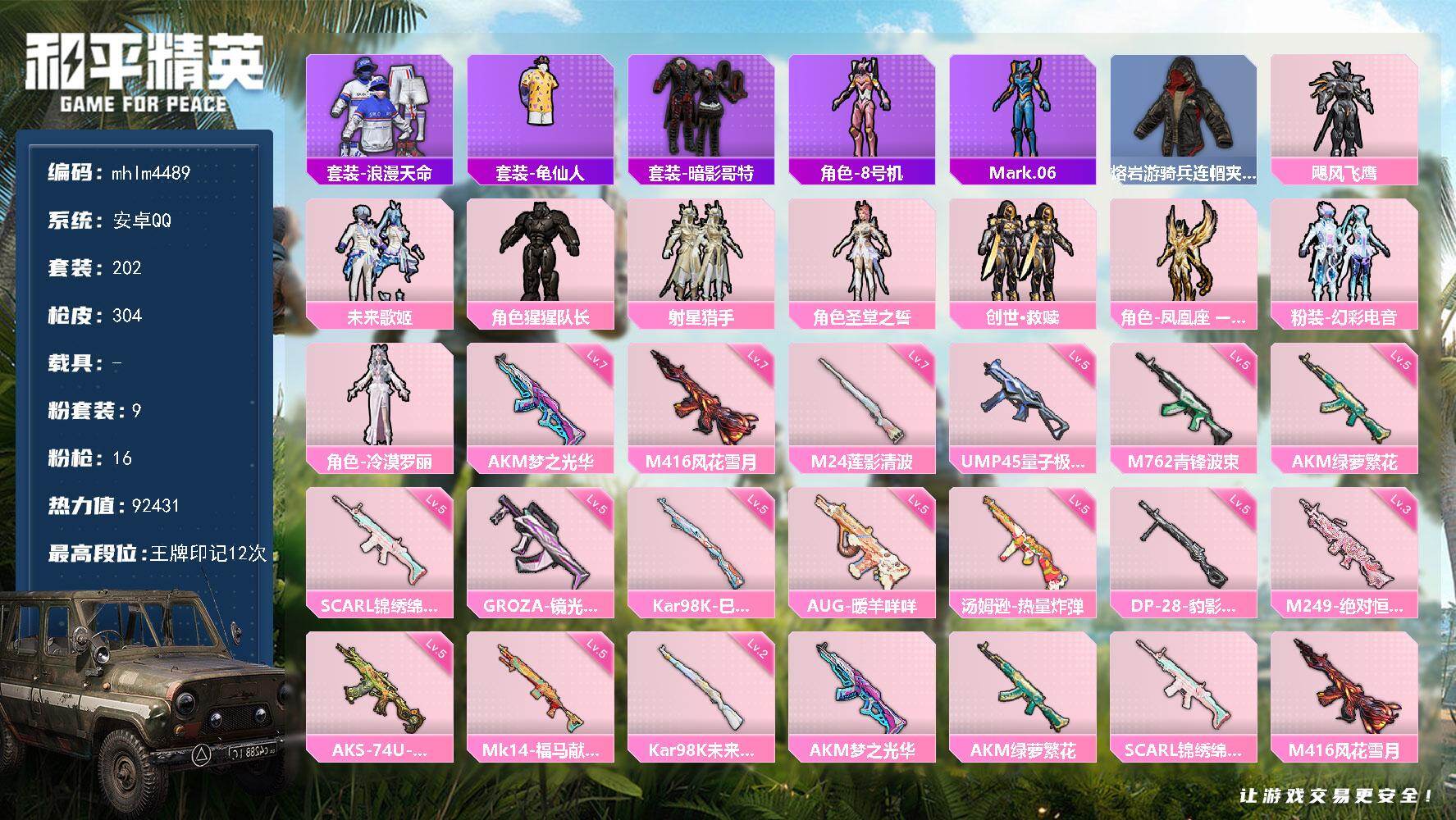 【mhlm4488】安卓 手Q-0粉装-1特效枪-0载具-0粉色飞行器-445