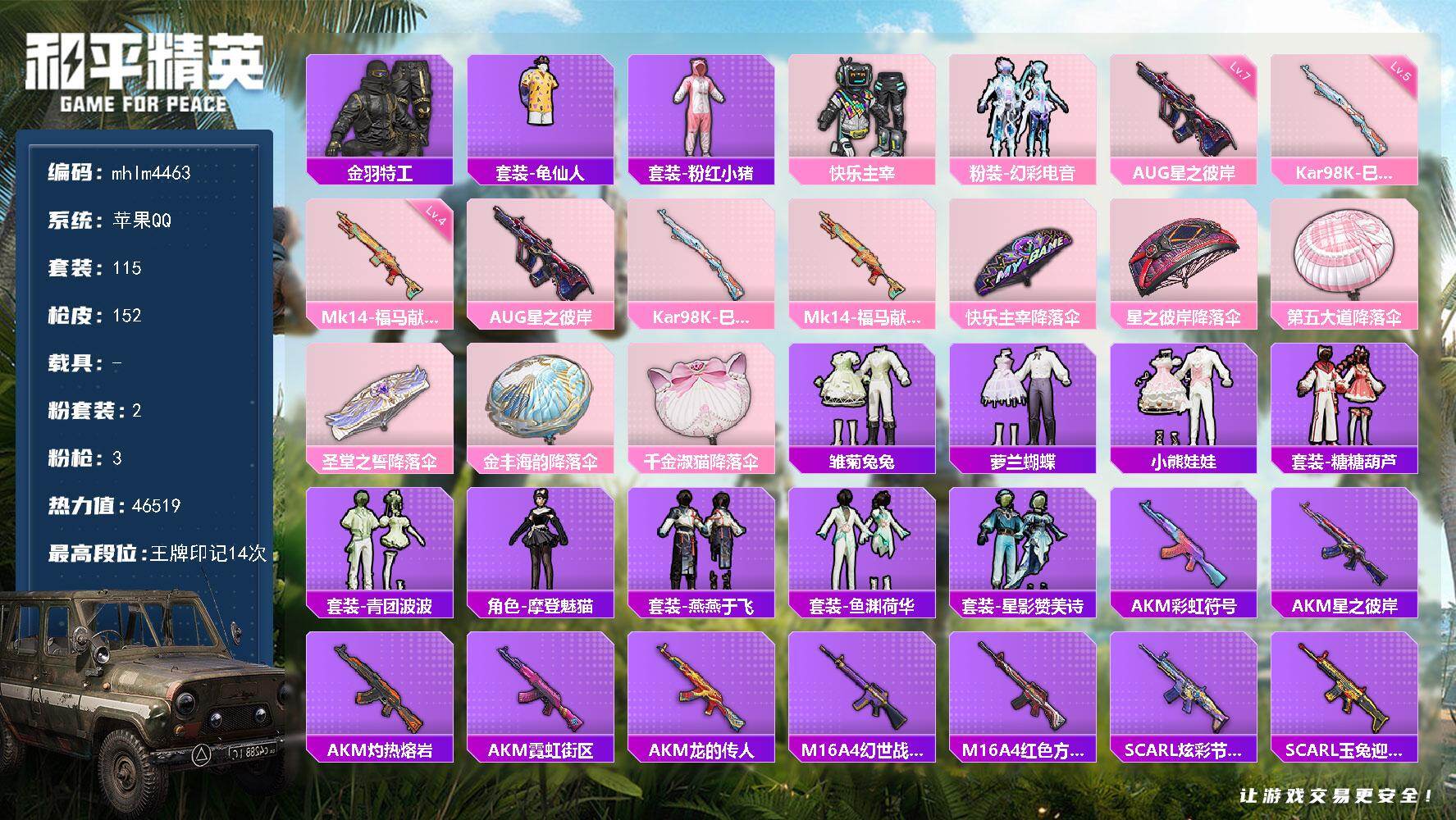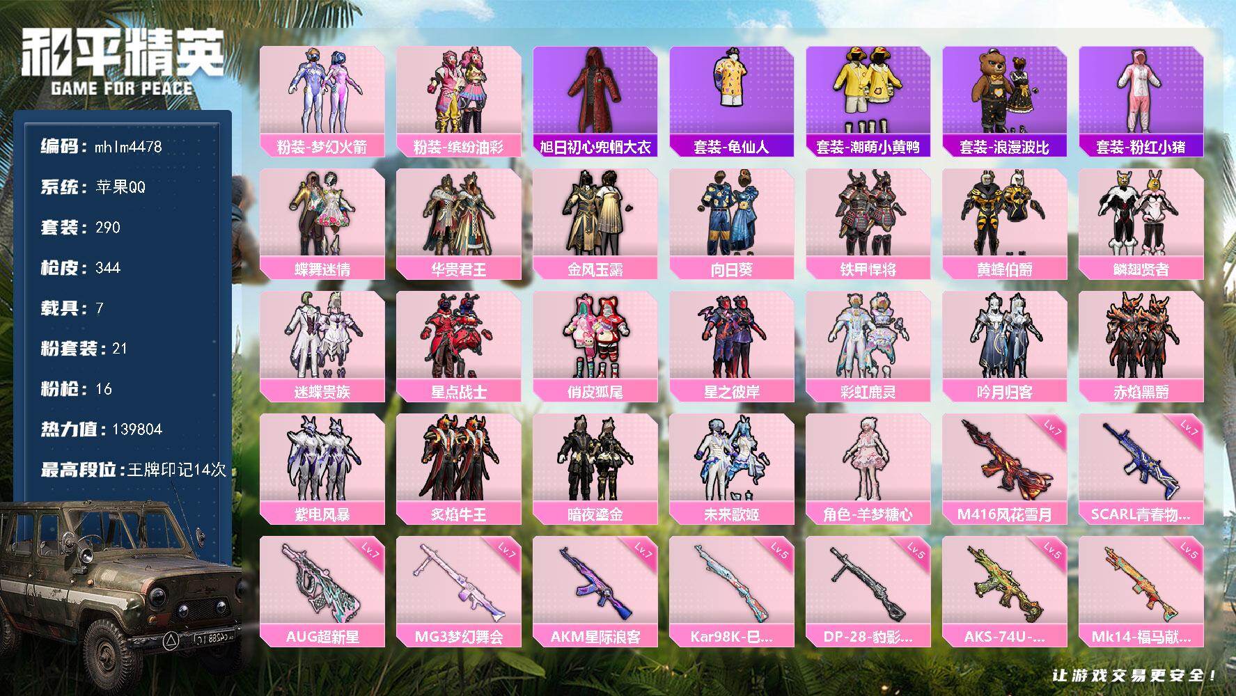 【mhlm4463】苹果 手Q-2粉装-3特效枪-0载具-0粉色飞行器-465
