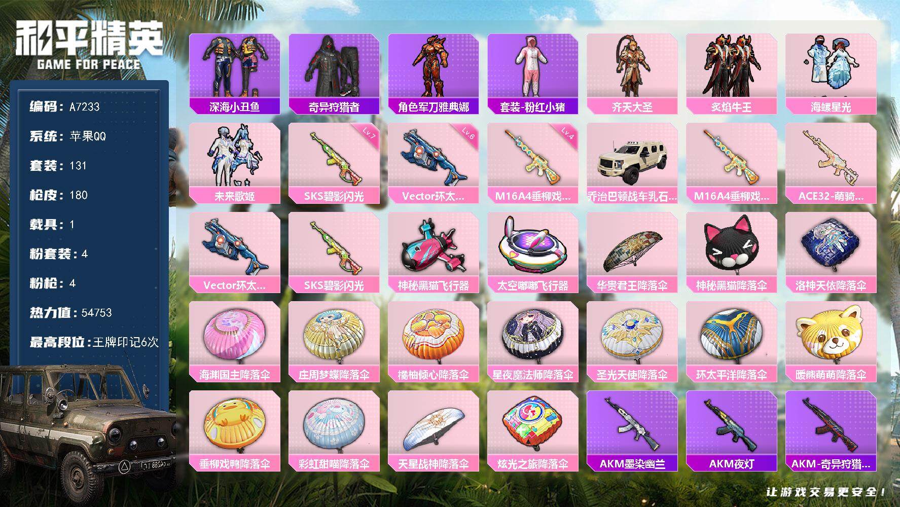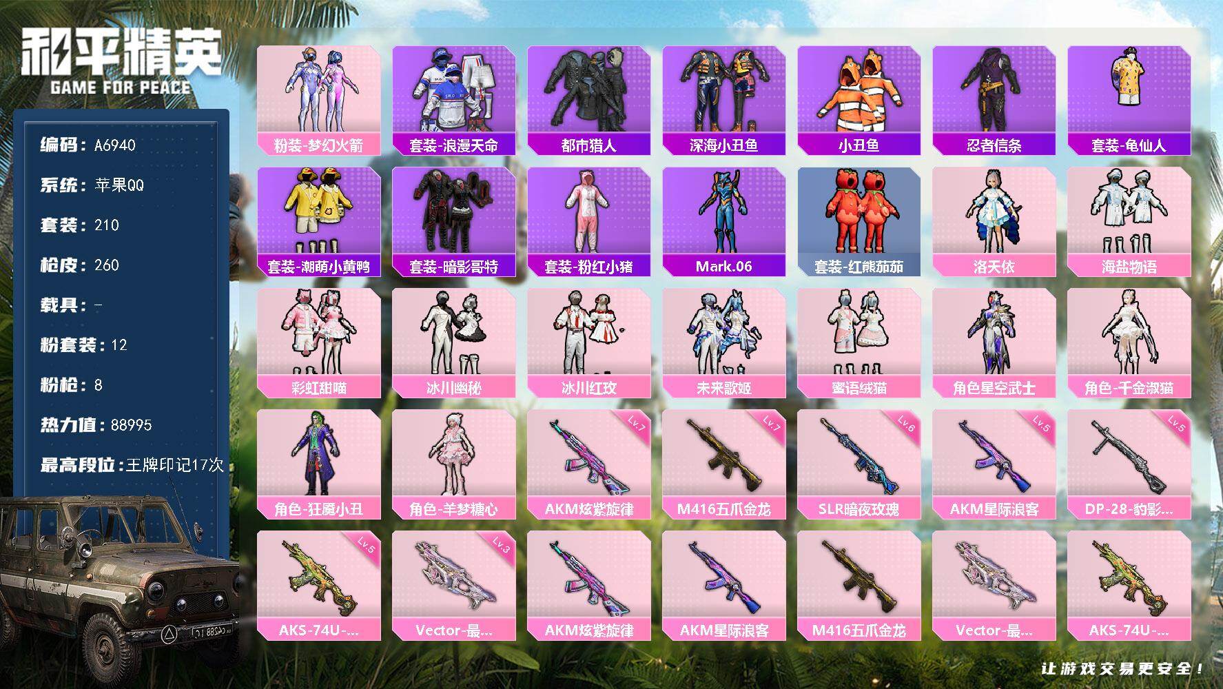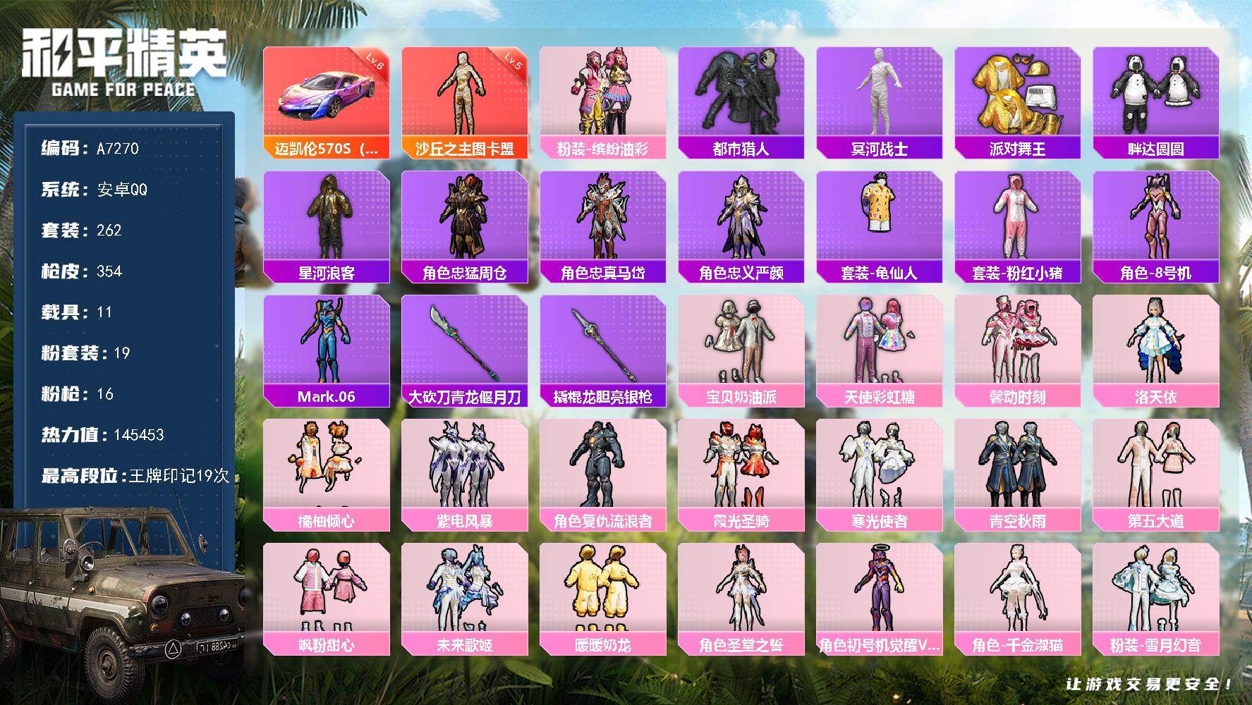可二次【5粉装4特效枪2载具可秒换绑】 安卓Q区-3888