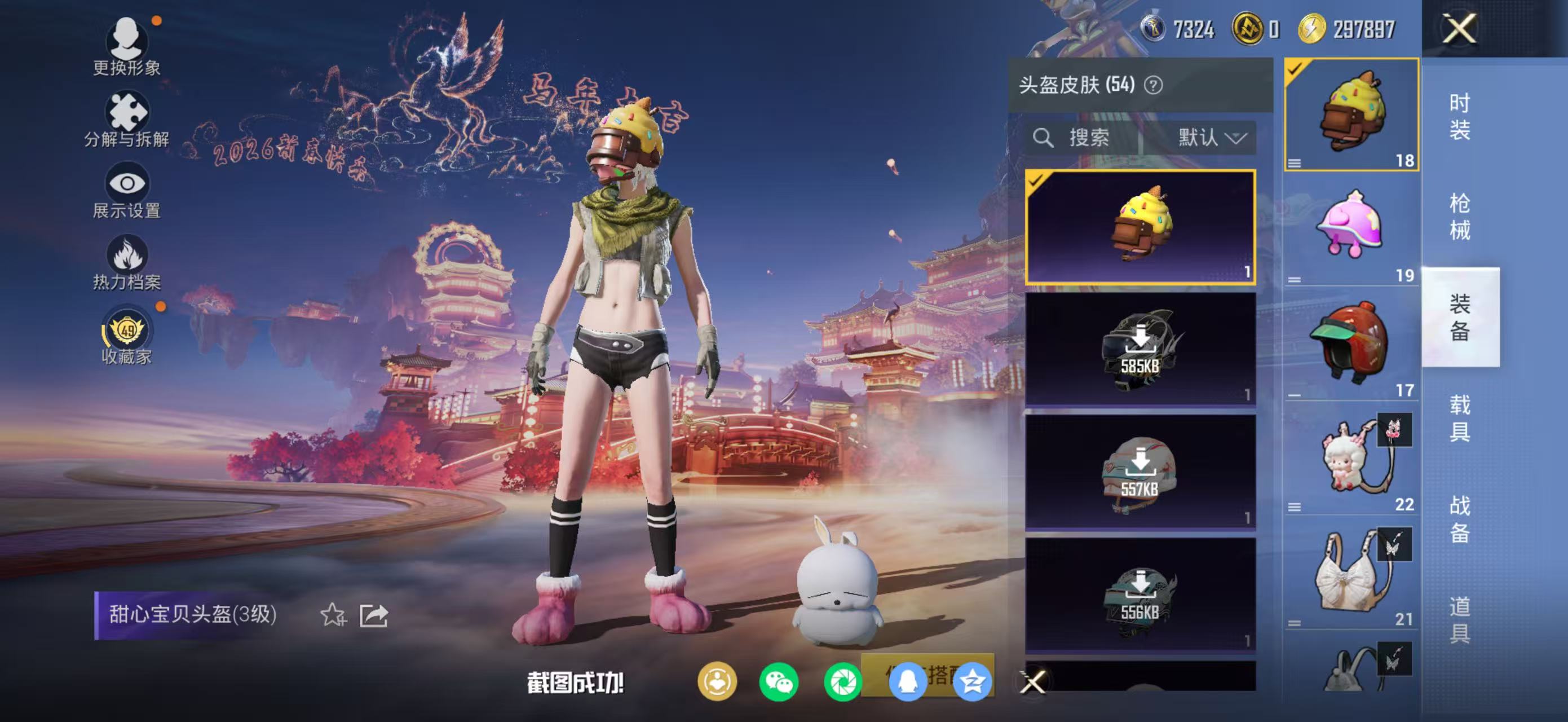 苹果 手Q-11粉装-13特效枪-7载具-2粉色飞行器-56481热力值-5王