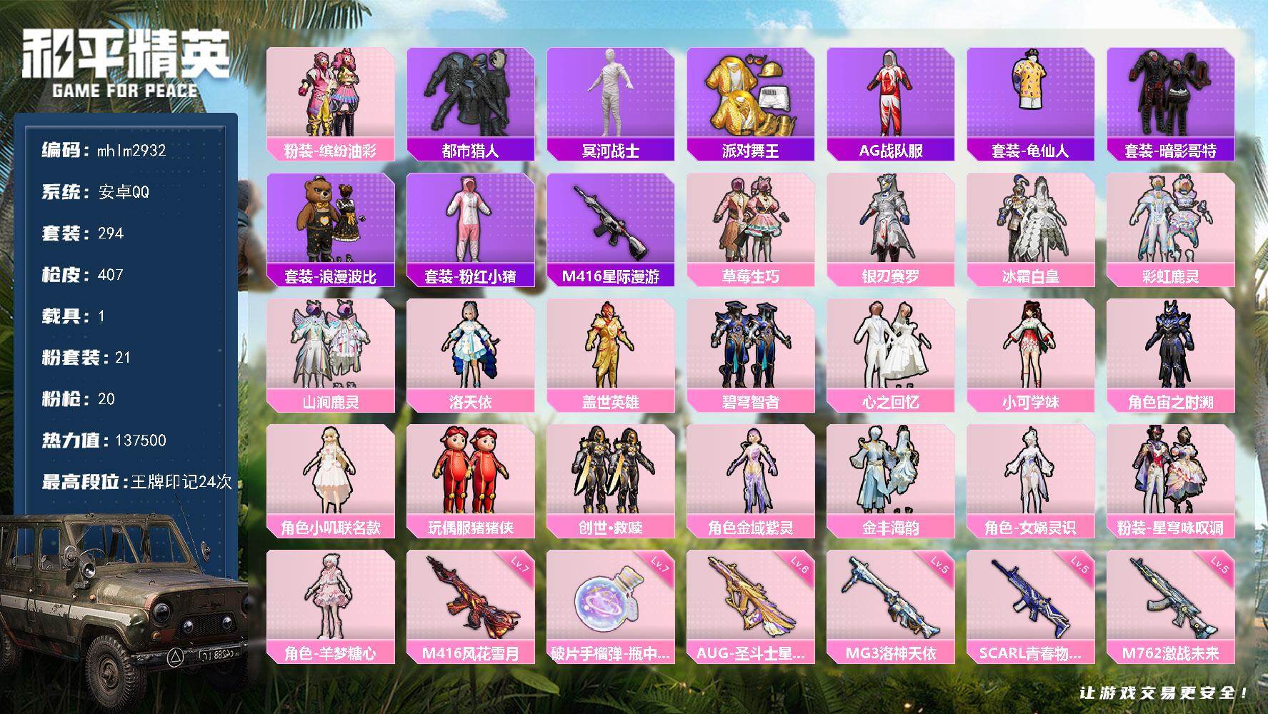 316-【1红装10粉装15特效枪2载具可秒换绑】 安卓Q区-45540热力值-