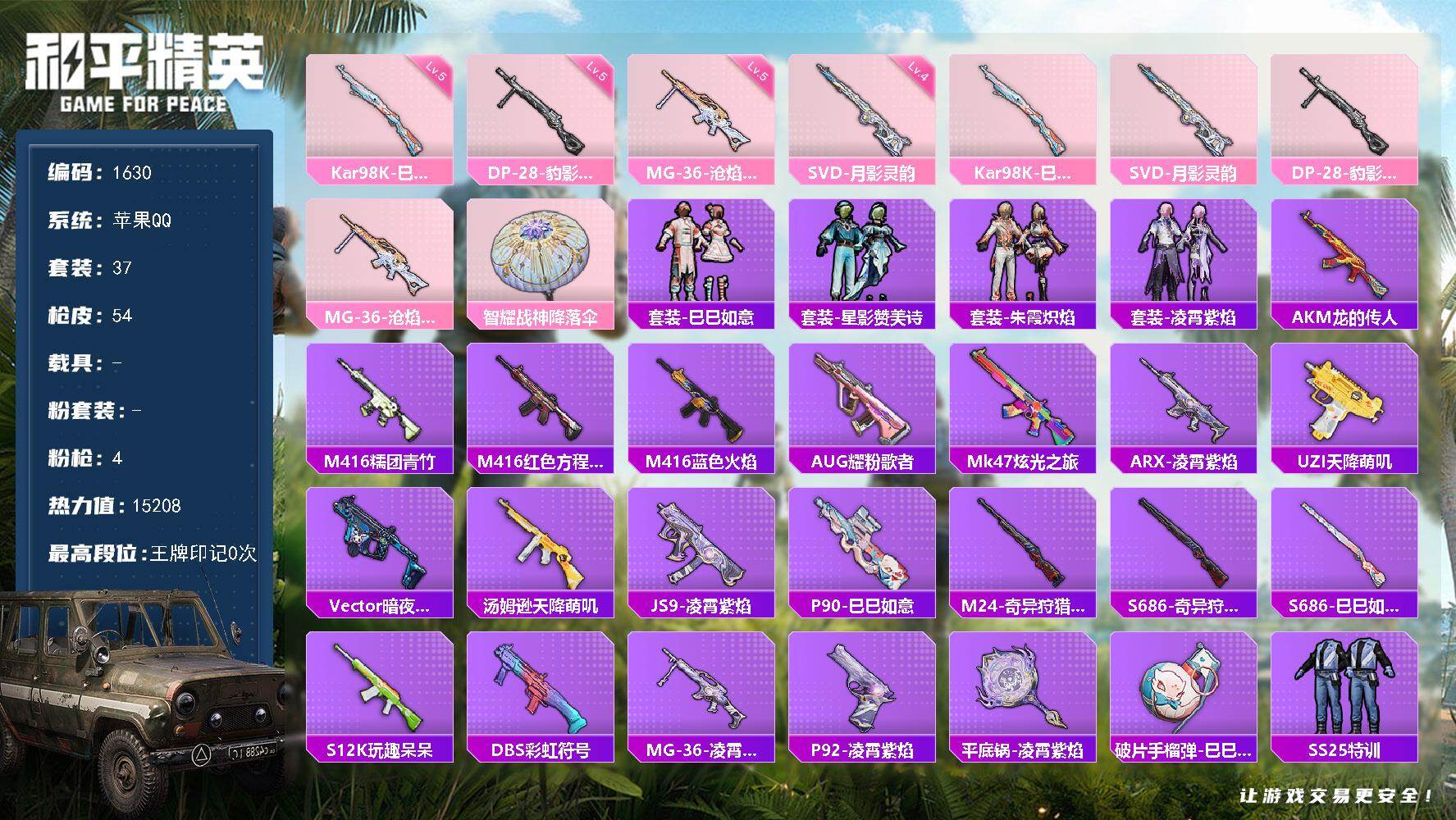 苹果 手Q-0粉装-4特效枪-0载具-0粉色飞行器-15208热力值-1王牌印
