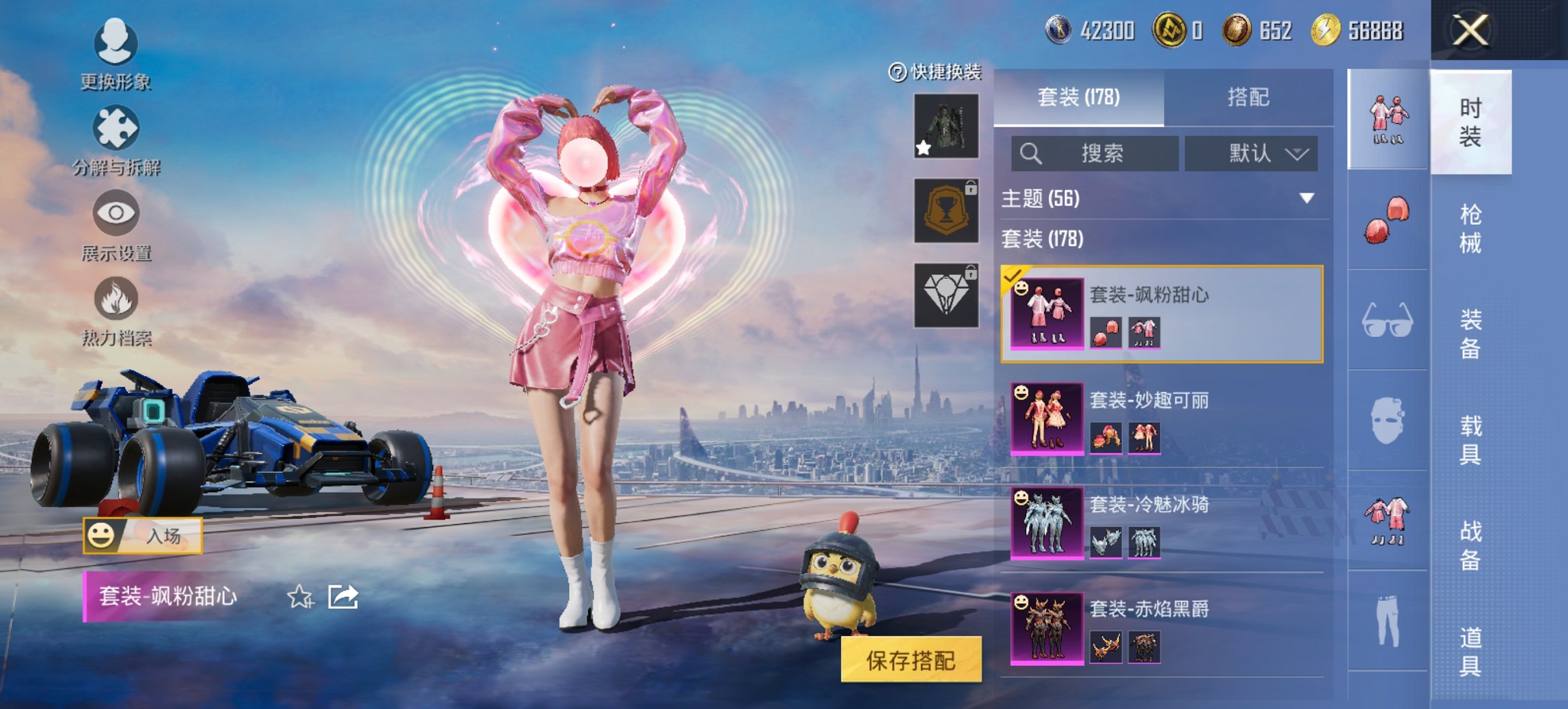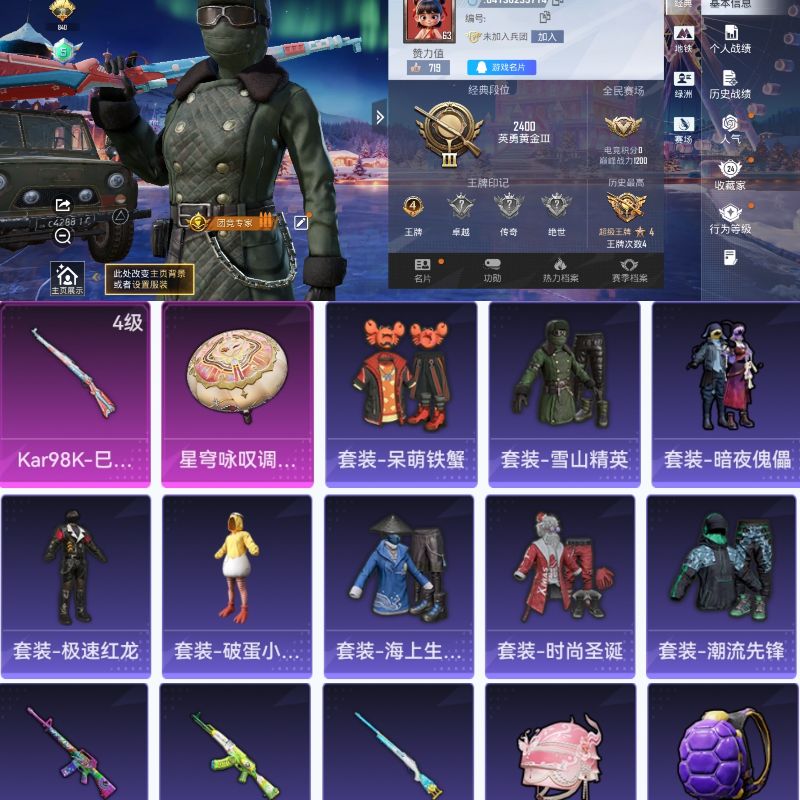 苹果 手Q-4粉装-5特效枪-4载具-2粉色飞行器-69729热力值-4王牌印