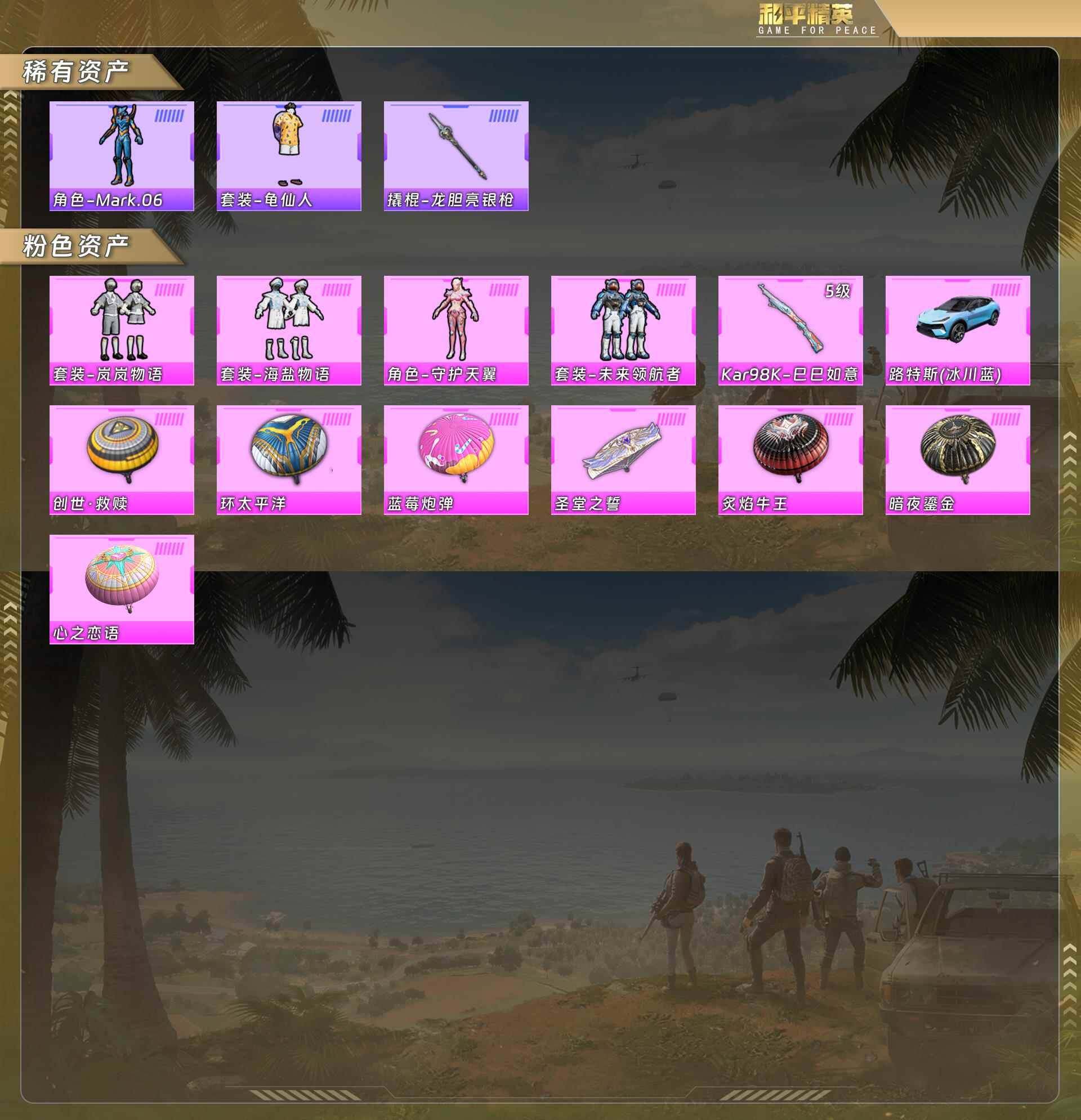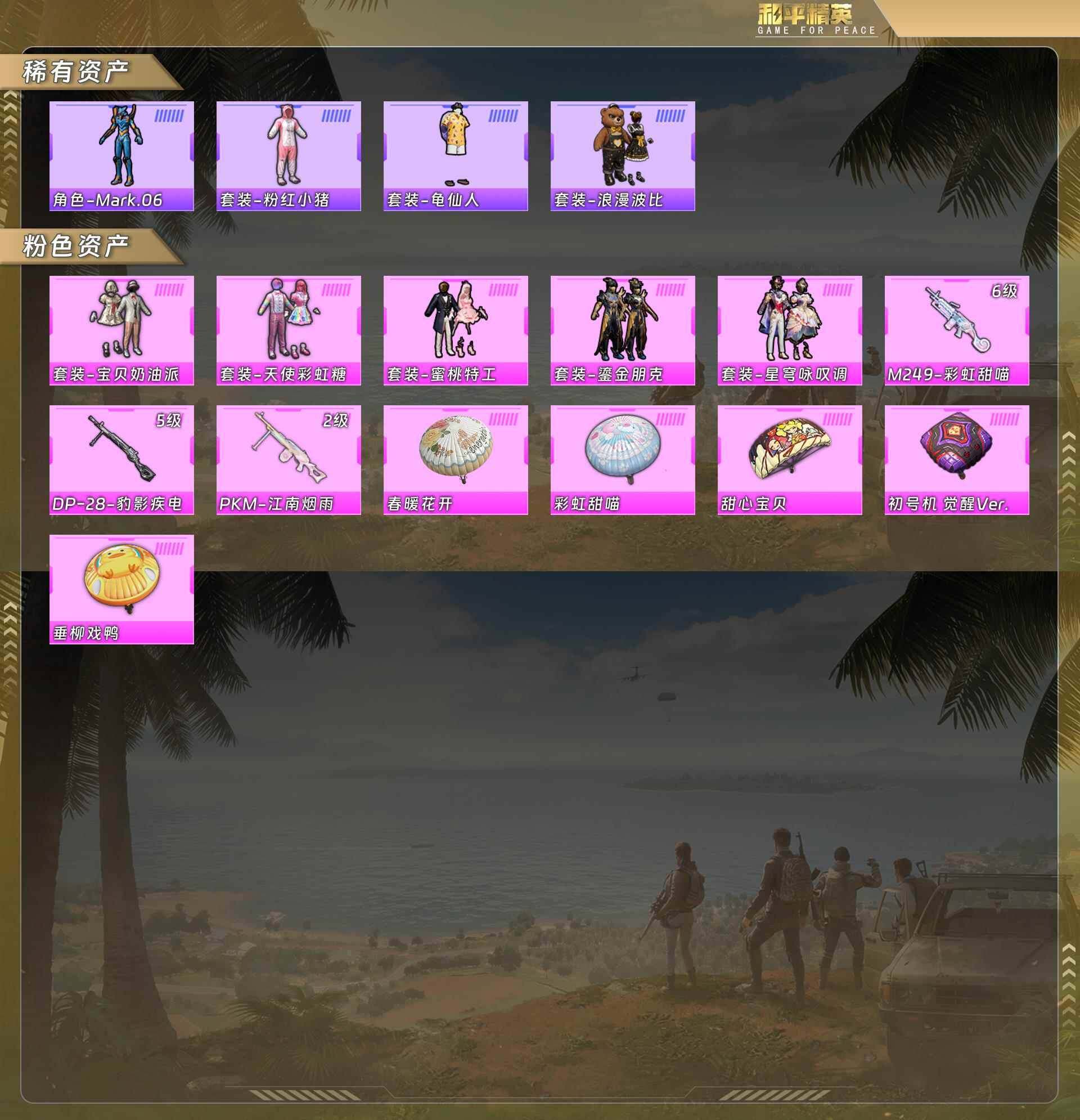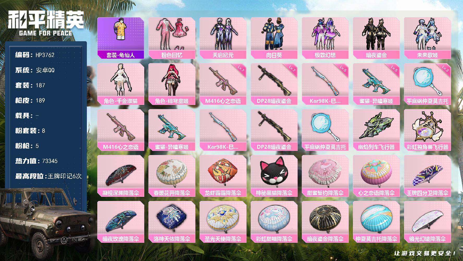 安卓 手Q-8粉装-5特效枪-0载具-3粉色飞行器-73345热力值-6王牌印