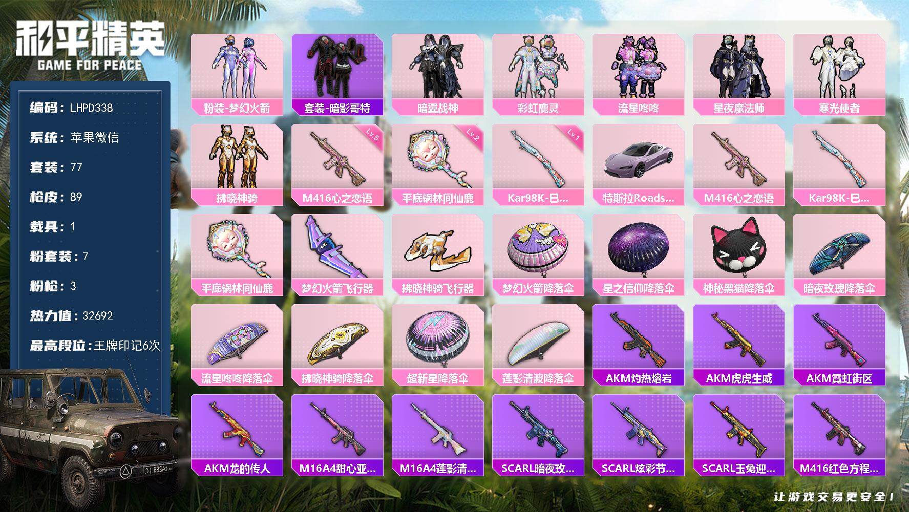 hs60976苹果微-10王牌印记-14粉装-11特效枪-4载具-76513热力值-148套装-2