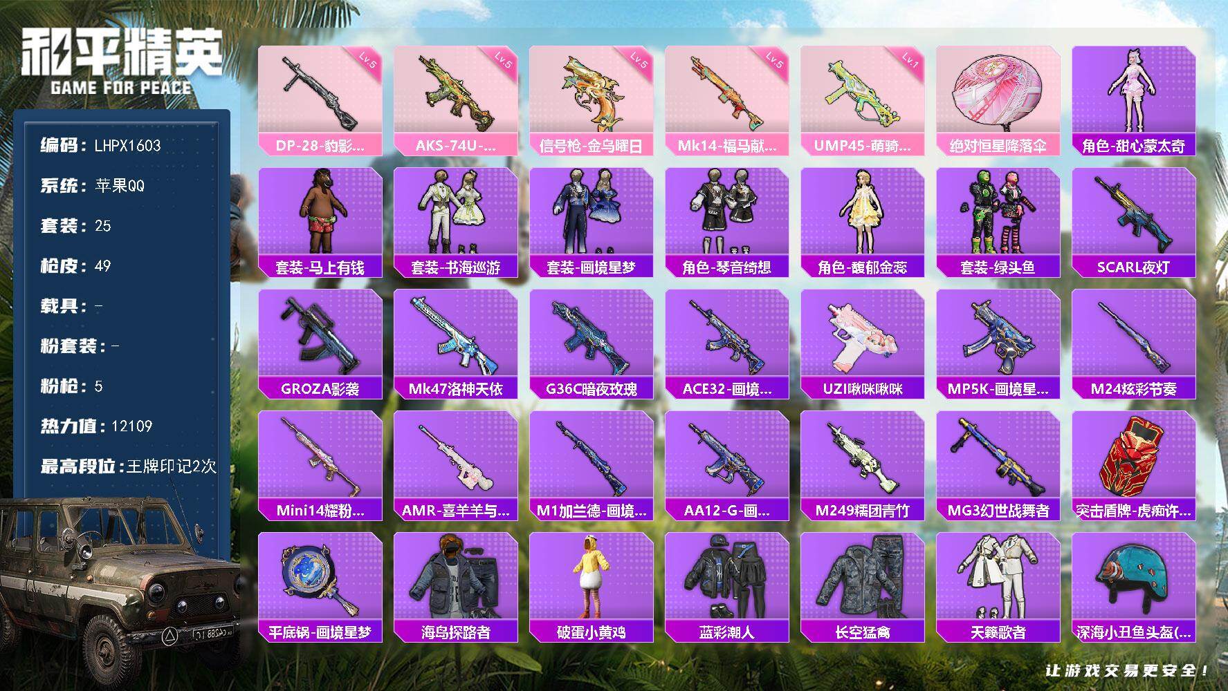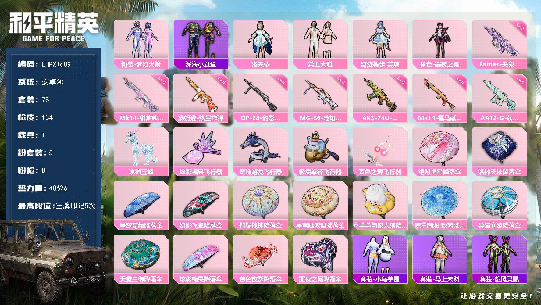 二五零八二四九_可二次-安卓Q-1红装1稀有1载具14粉装7特效枪4热门-连