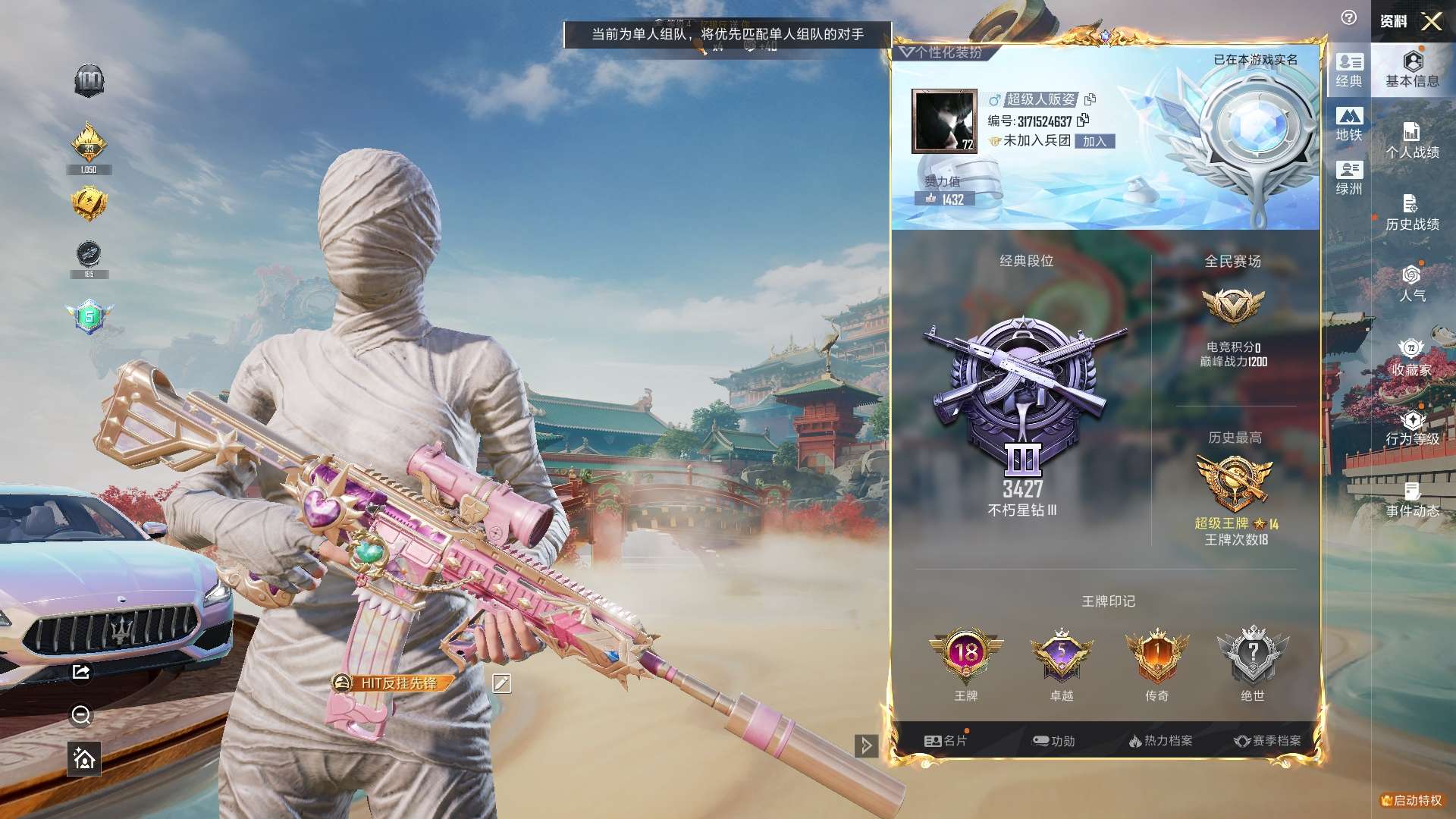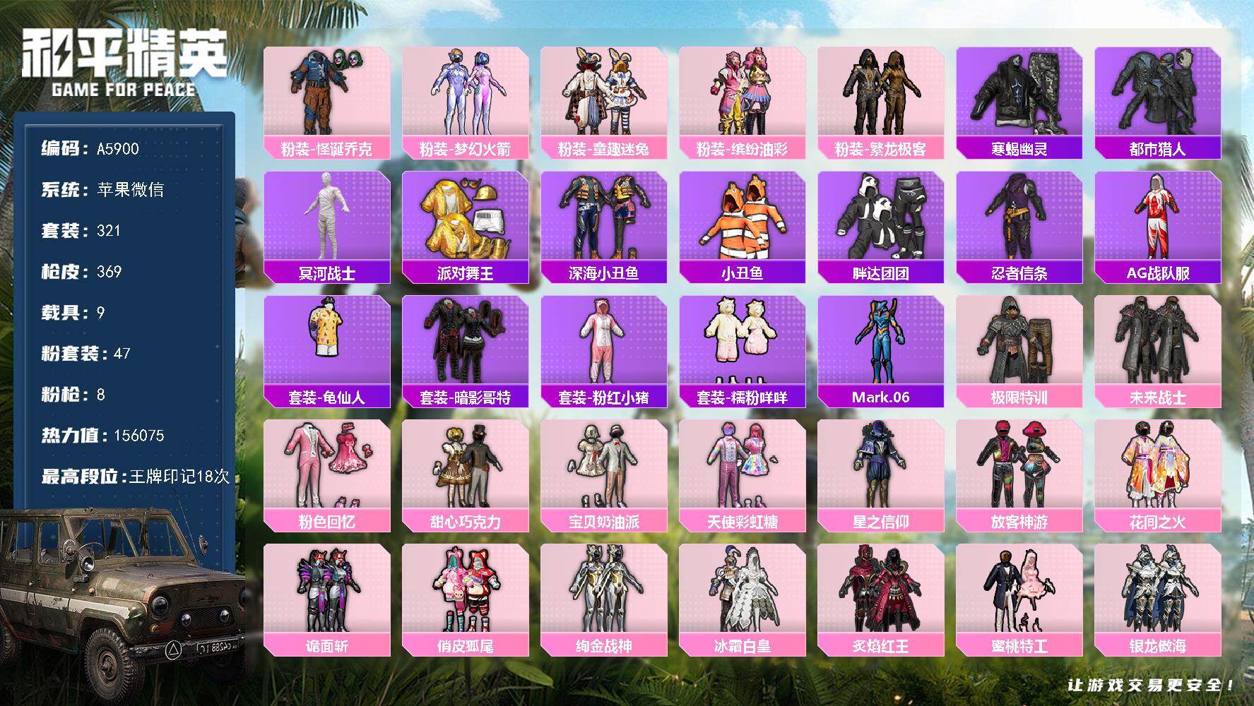 a4262/苹果v/18王牌印记-15粉装-10特效枪-2载具-84018热力值-147套装-22