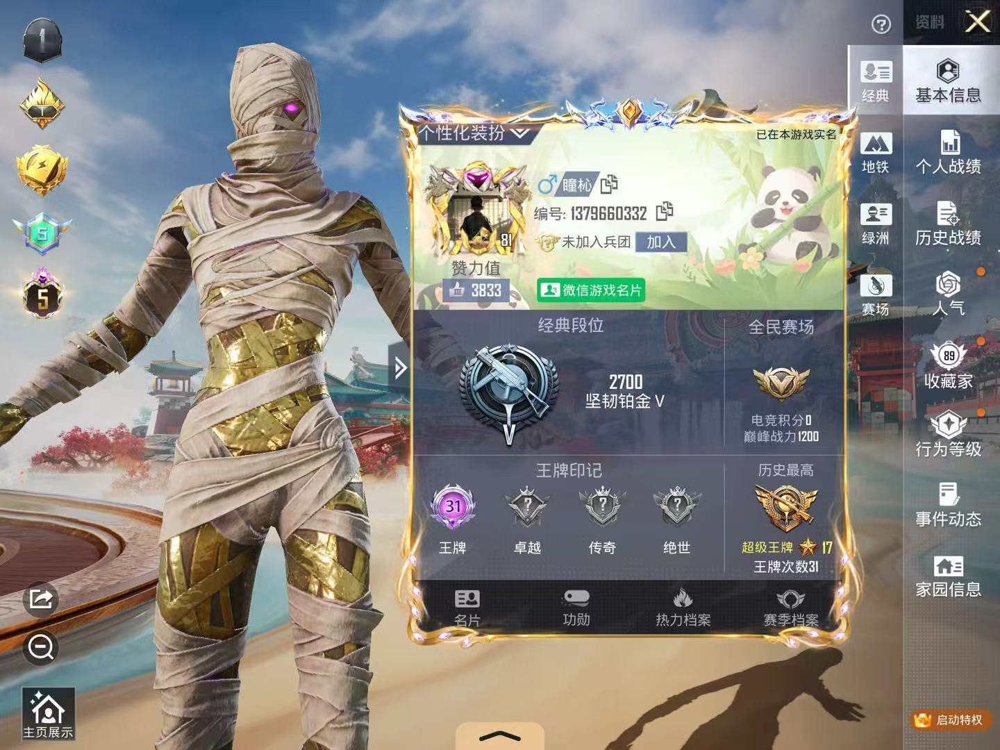 热力值:89141,29粉装,14粉枪,3载具,35粉色战备,191套装,235枪械,
