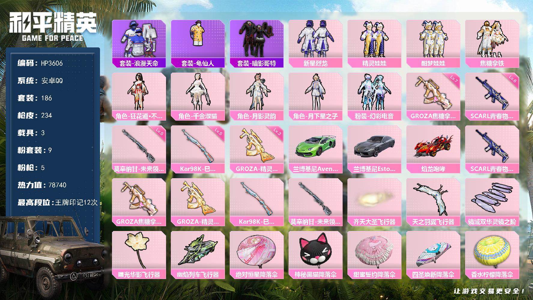 安卓 手Q-9粉装-5特效枪-3载具-6粉色飞行器-78740热力值-12王牌