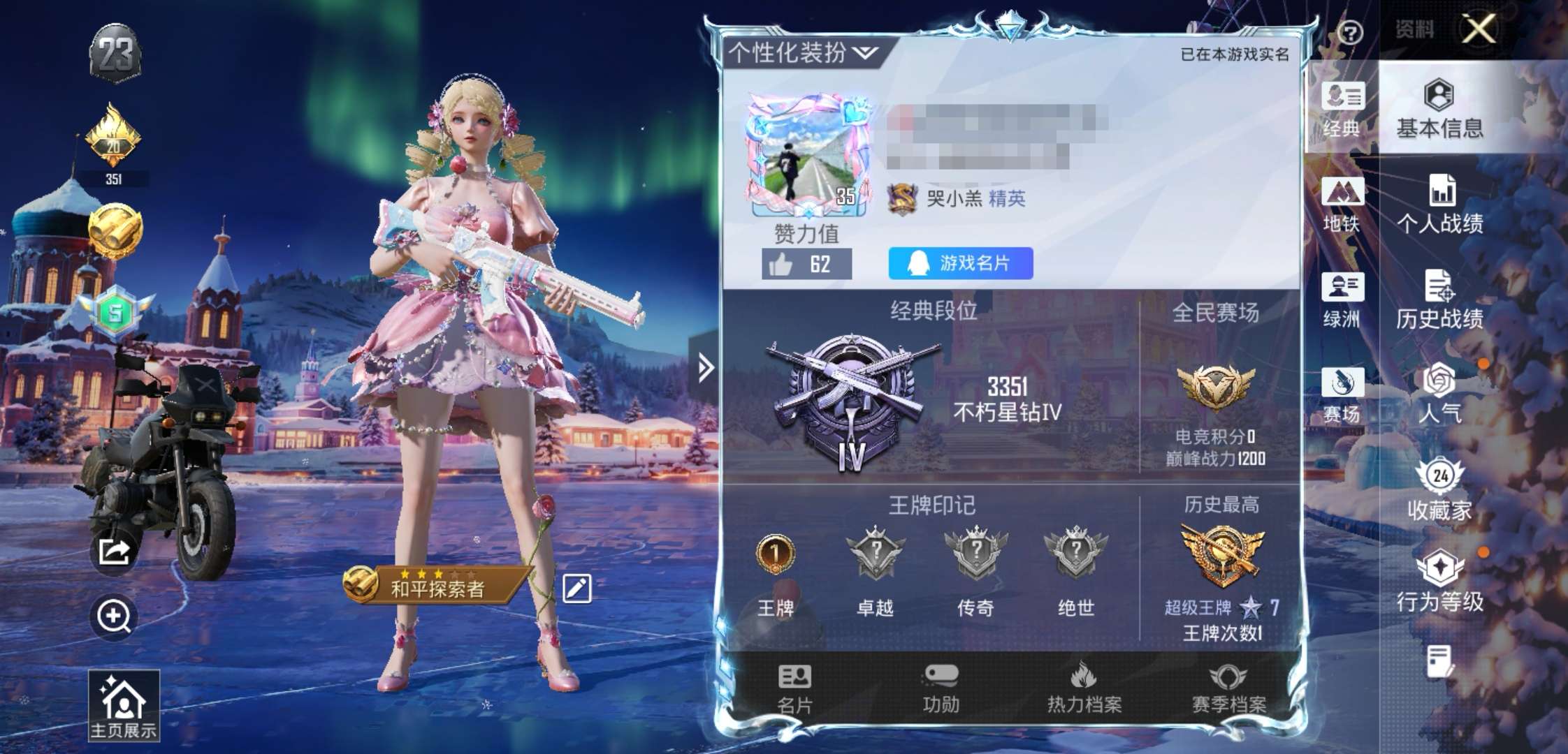 安卓 手Q-5粉装-3特效枪-0载具-1粉色飞行器-43597热力值-4王牌印