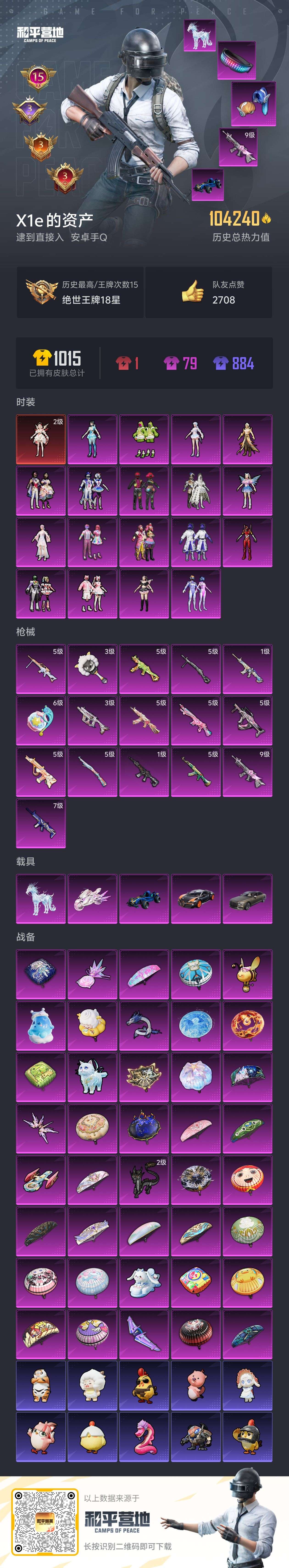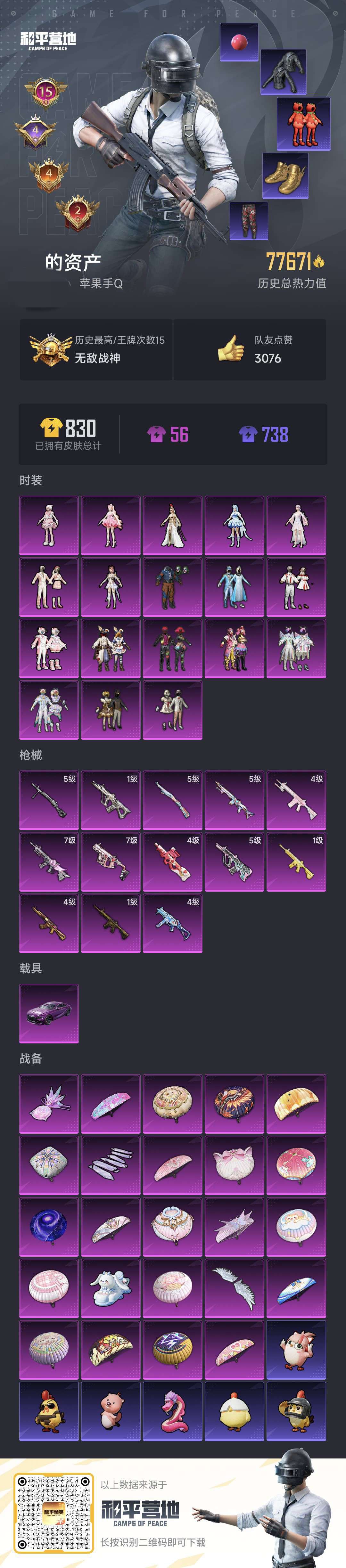 hs58064 苹果手Q-18王牌印记-8粉装-7特效枪-2载具-98838热力值-203套装-31