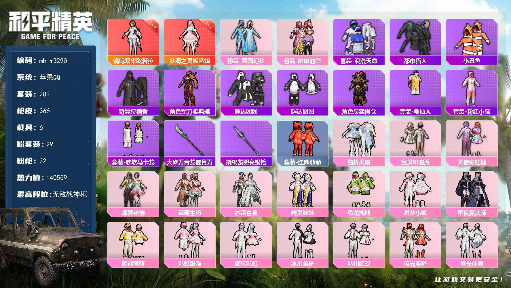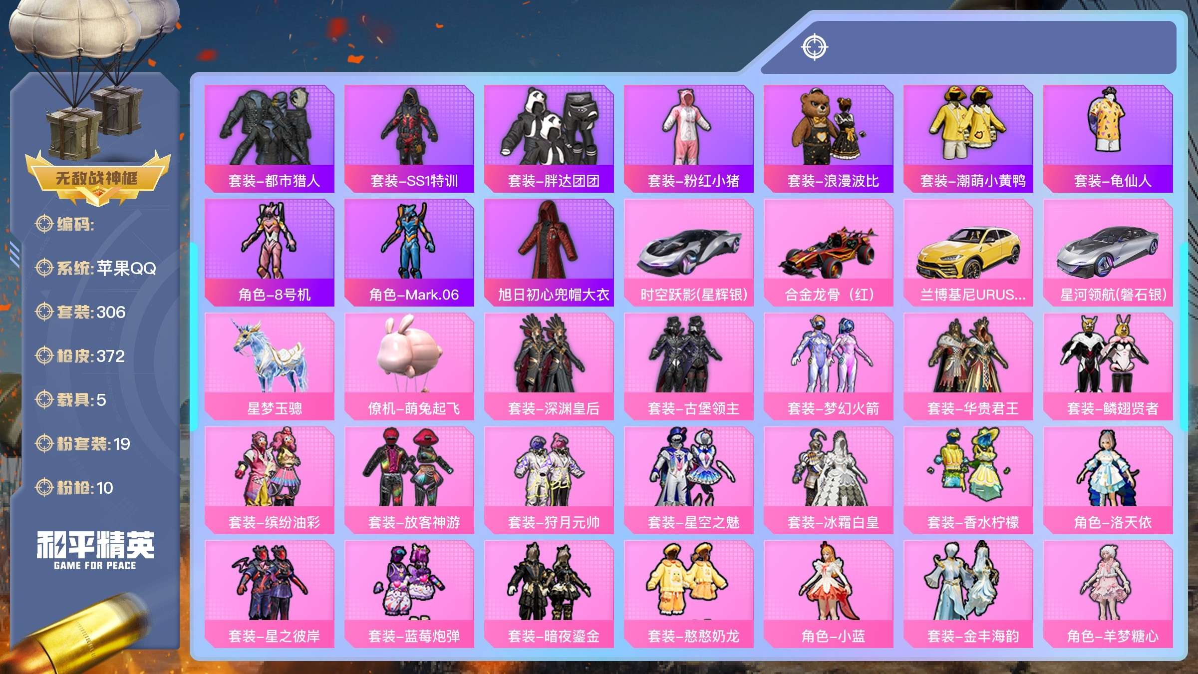 a4228/苹果QQ/热力值:141241,19粉装,10粉枪,5载具,44粉色战备,306套装,3