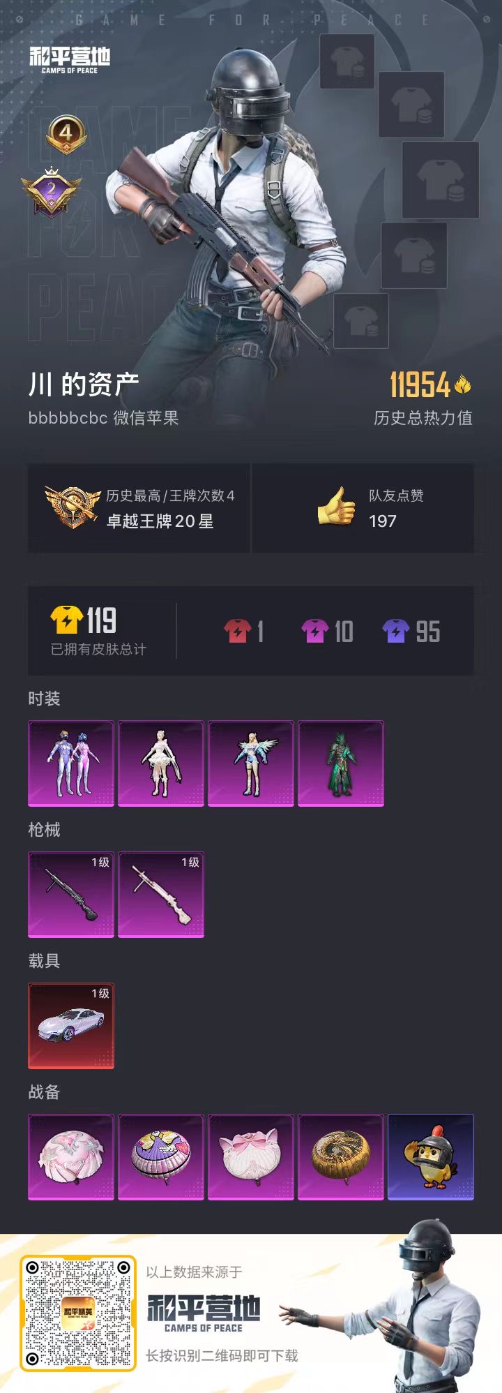 165套装/枪械2/装备252/战备144/王牌印记9/热力值64018/五级
