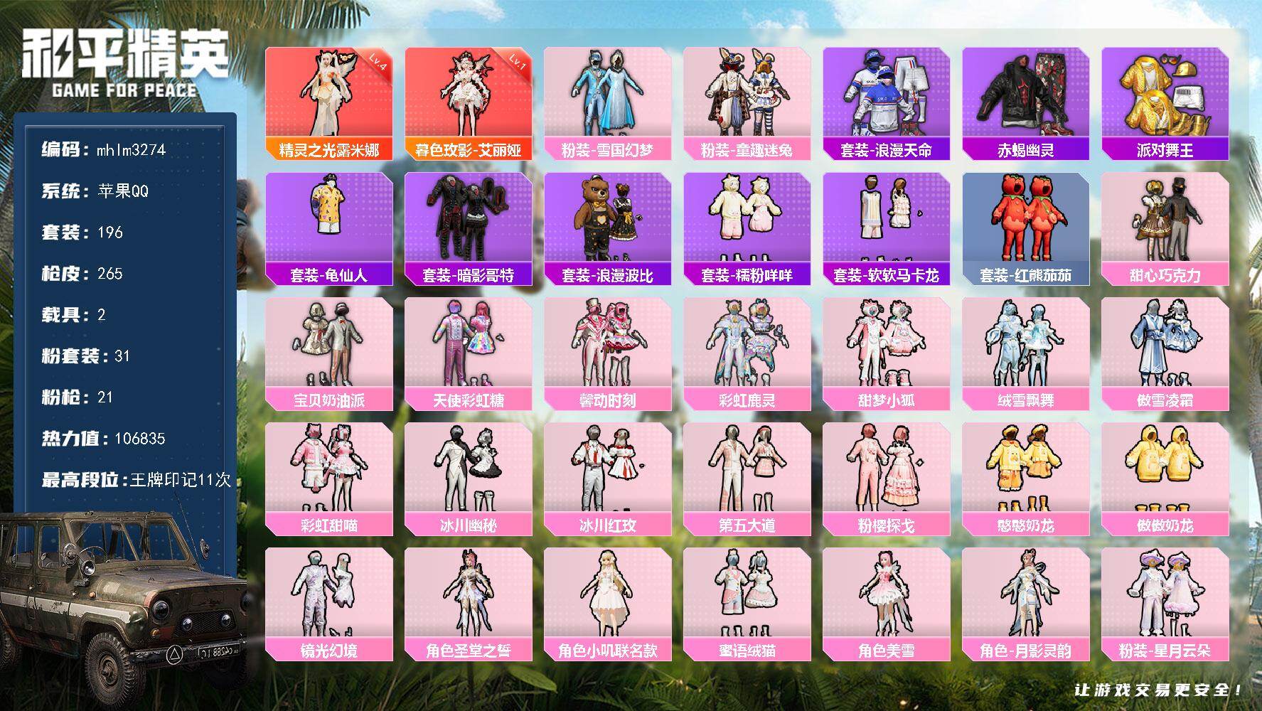 【mhlm3274】苹果 手Q-2神装-31粉装-21特效枪-2载具-12粉色