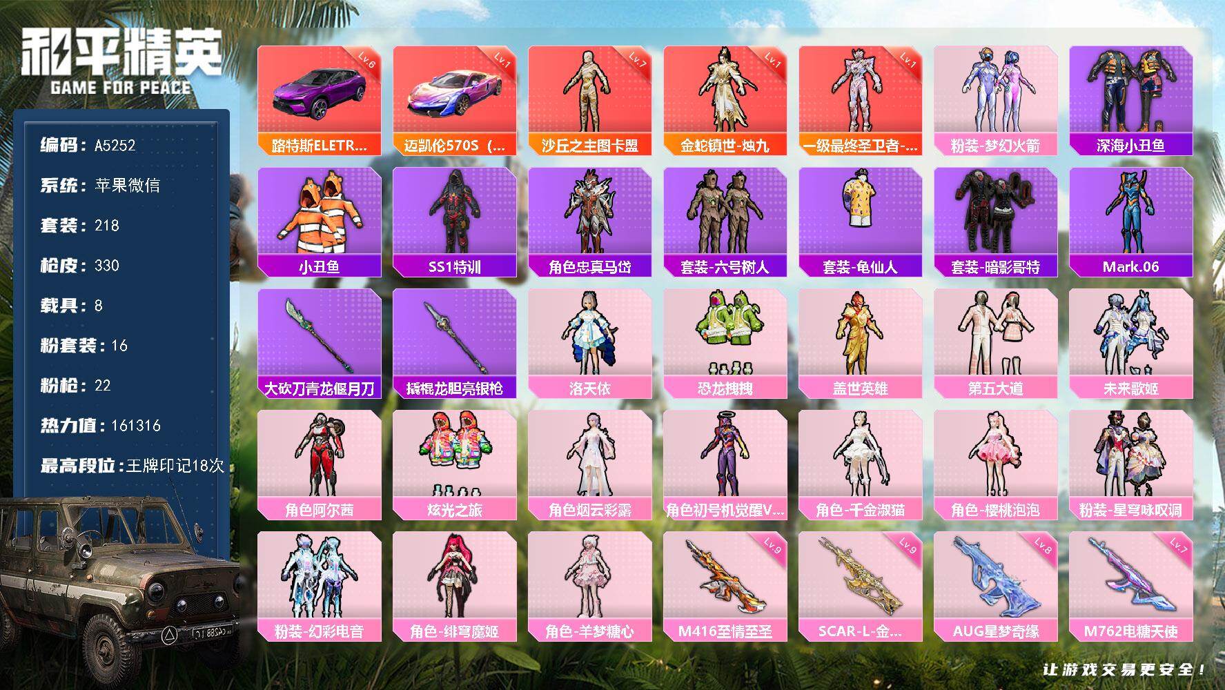 hs56384苹果手Q-12王牌印记-9粉装-7特效枪-2载具-98383热力值-180套装-28