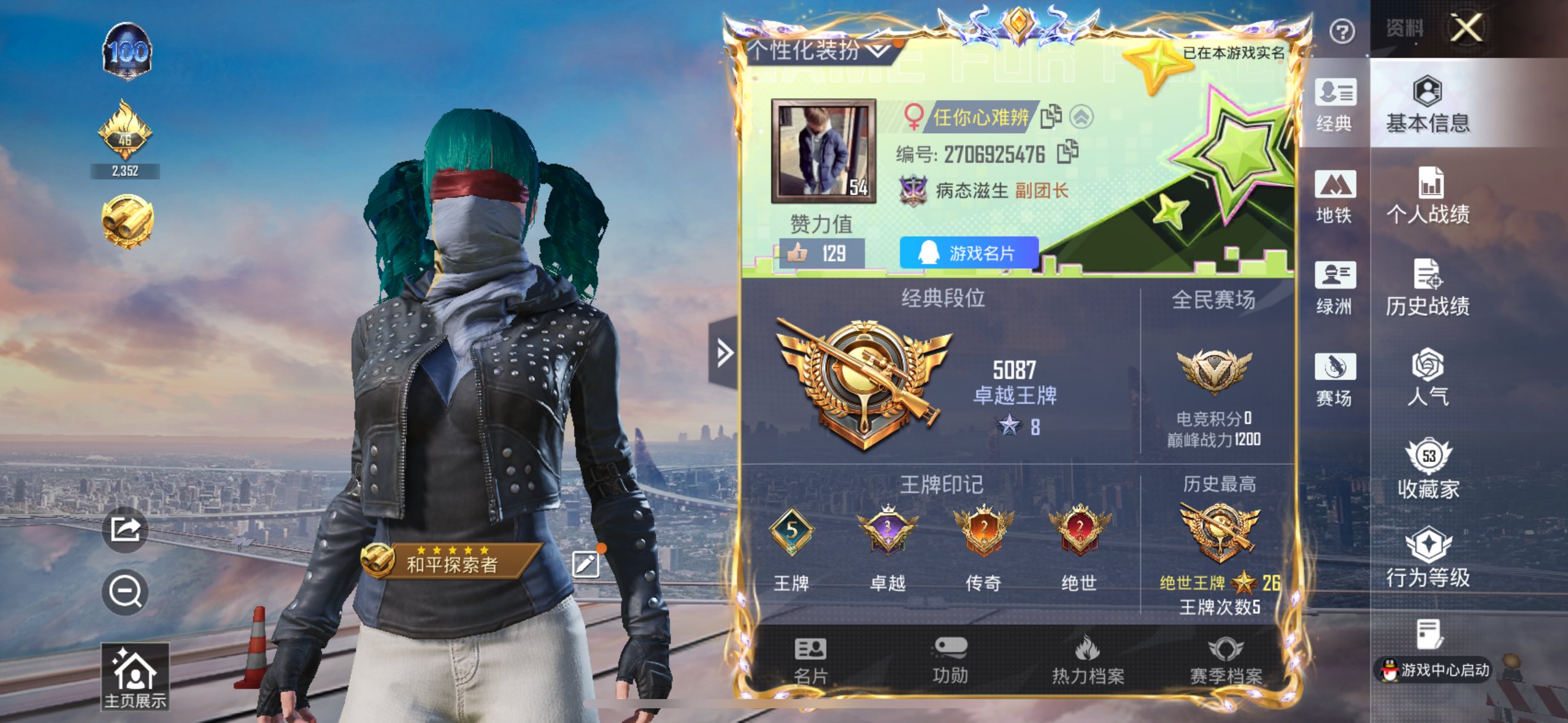 hs54159 安卓手Q-7王牌印记-5粉装-1特效枪-1载具-46829热力值-111套装-151