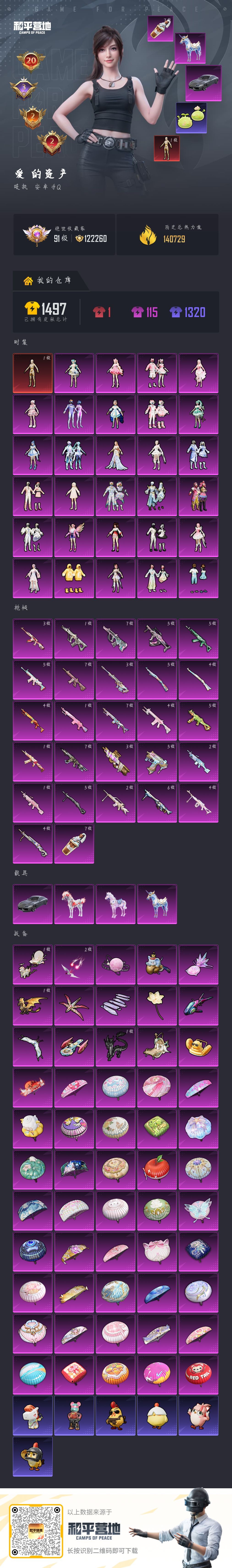 hs55894 苹果手Q-1王牌印记-15粉装-7特效枪-6载具-68511热力值-86套装-109