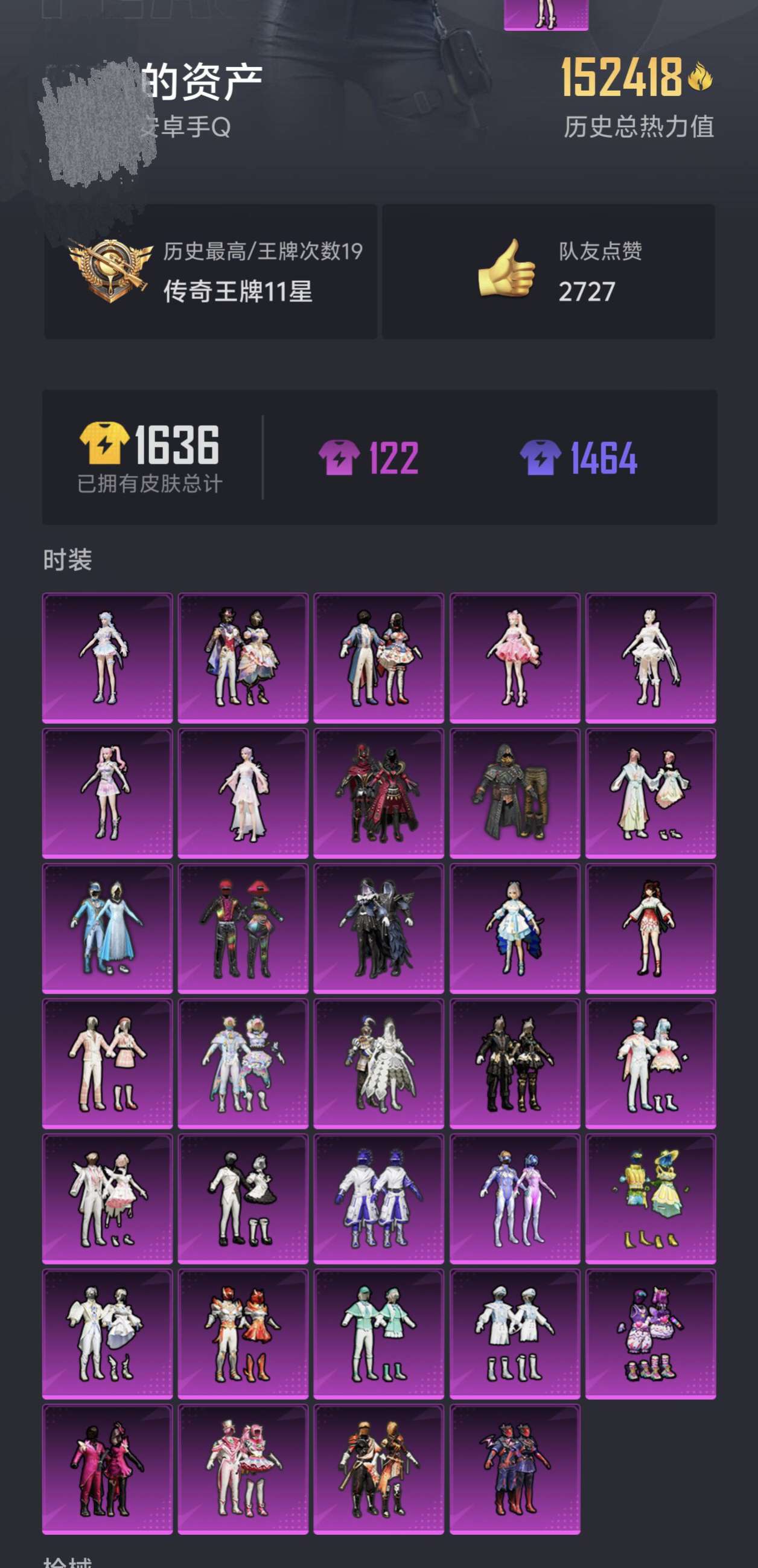 hs52580 苹果手Q-16王牌印记-5粉装-4特效枪-1载具-62475热力值-151套装-20