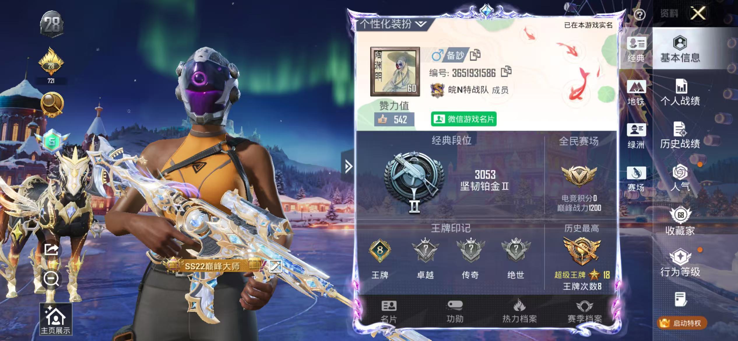 hs52576 安卓手Q-20王牌印记-有战神框-3粉装-5特效枪-1载具-85641热力值-235