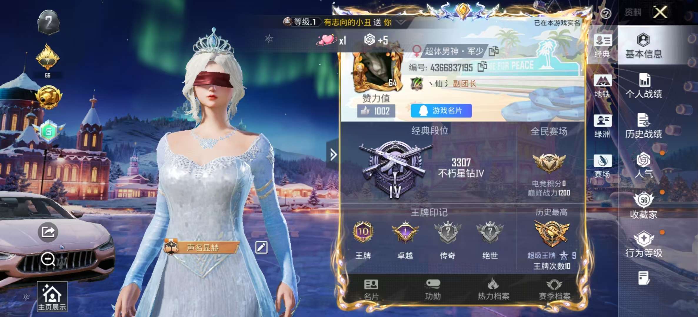 hs52367 苹果手Q-13王牌印记-1红装-10粉装-9特效枪-1载具-68360热力值-123