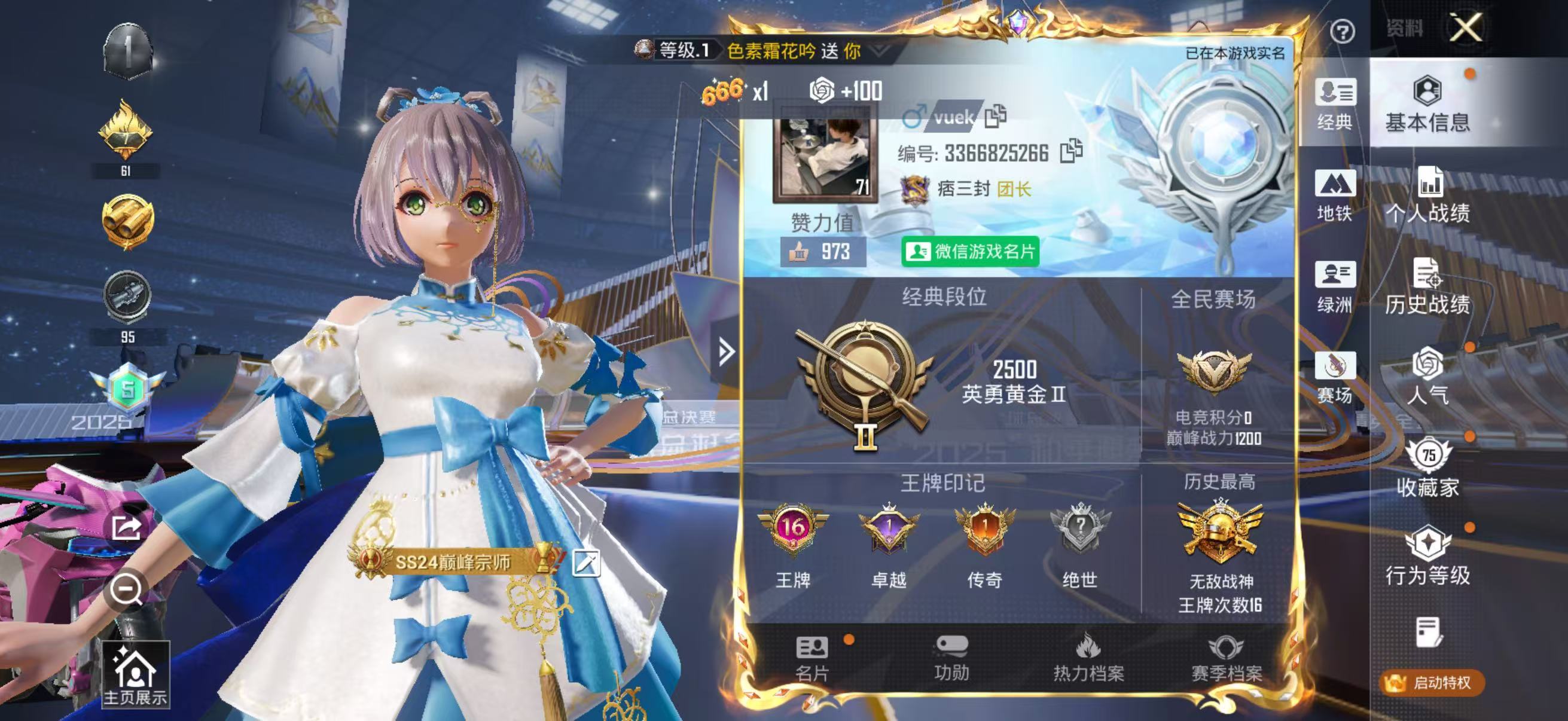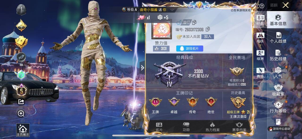 苹果 手Q-5粉装-1特效枪-0载具-0粉色飞行器-28725热力值-6王牌印
