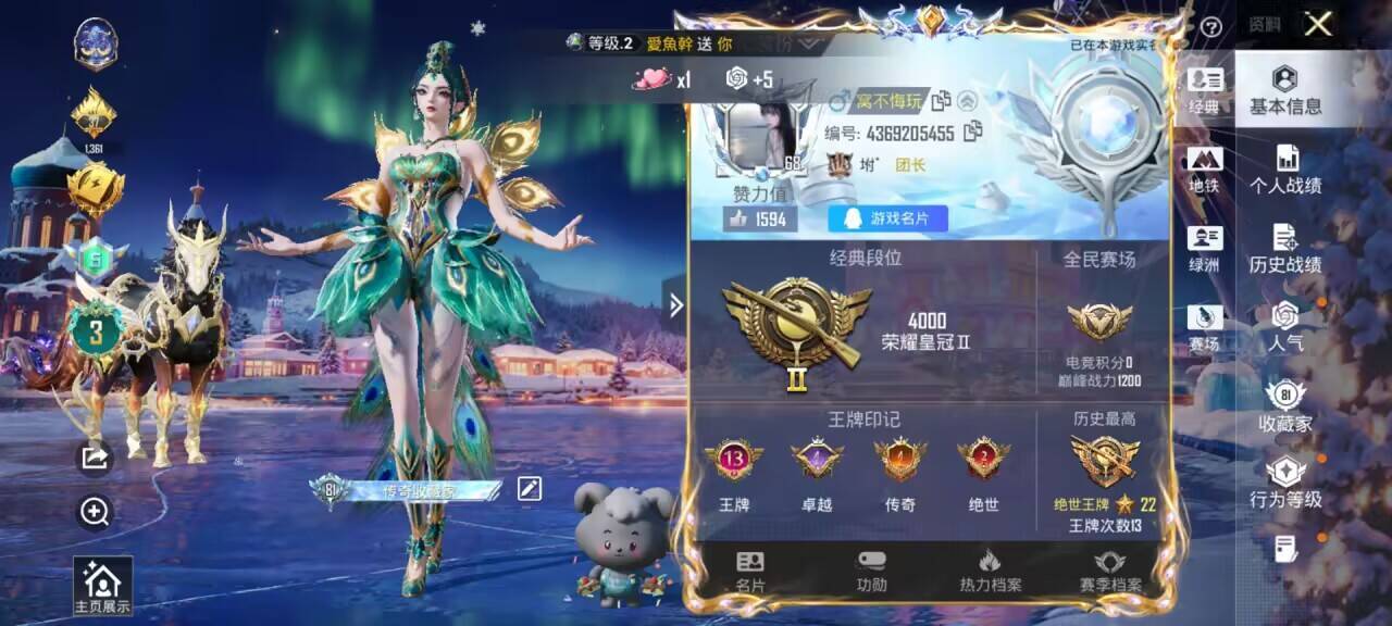 苹果手Q-13王牌印记-2红装-11粉装-10特效枪-5载具-119281热力值-2