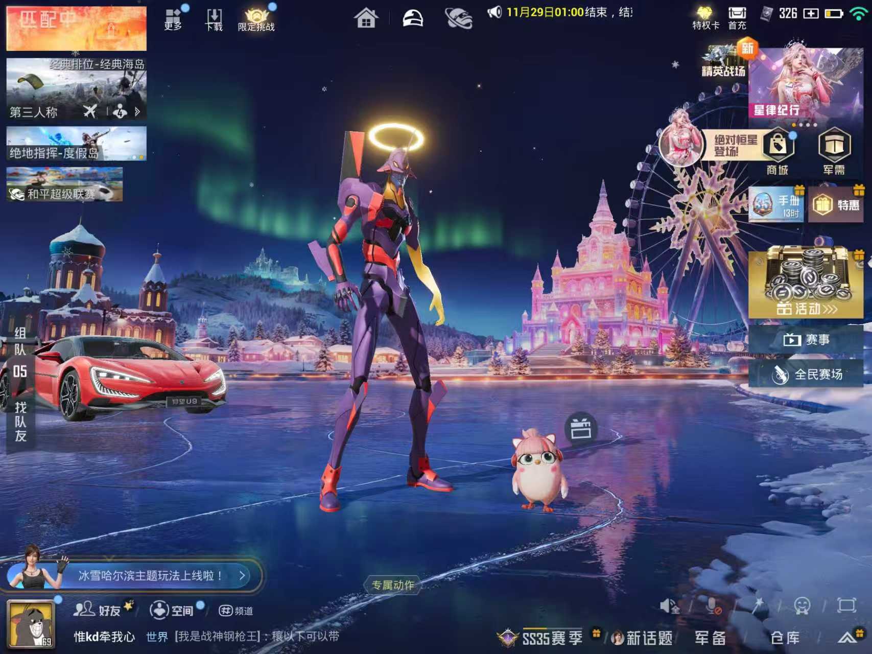 身法号-地铁满天赋/宾利飞驰(皇家紫)[2级]/M416-风花雪月[5级]/浪