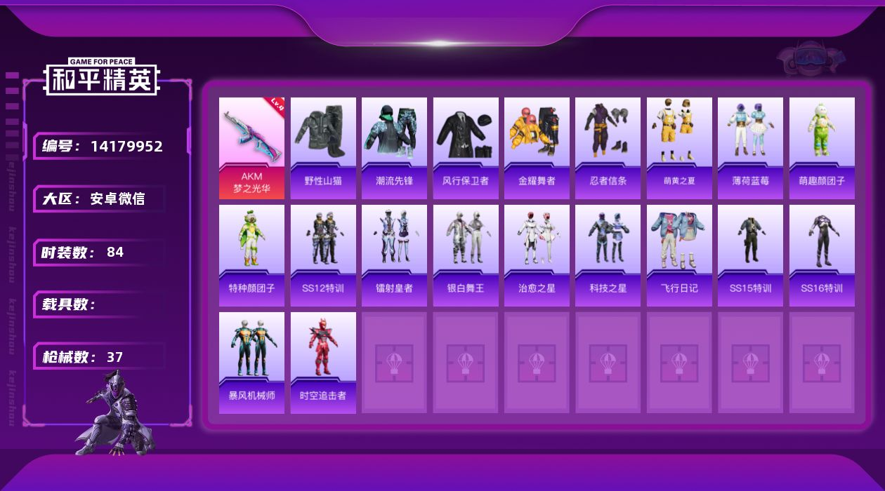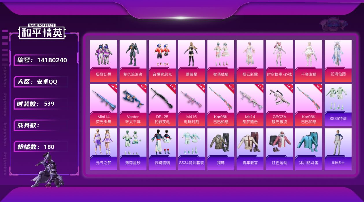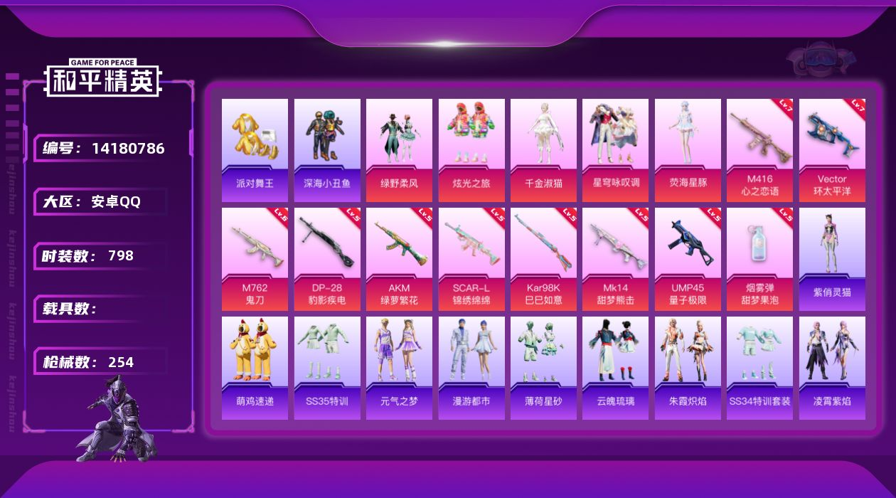 安卓手Q-16王牌印记-1红装-8粉装-5特效枪-2载具-196套