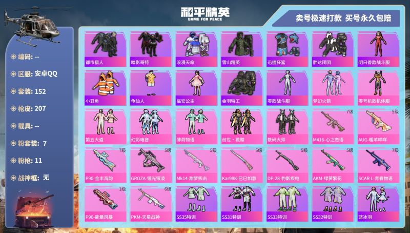 hs45359 安卓手Q-16王牌印记-7粉装-11特效枪-0载具-65796热力值-152套装-2
