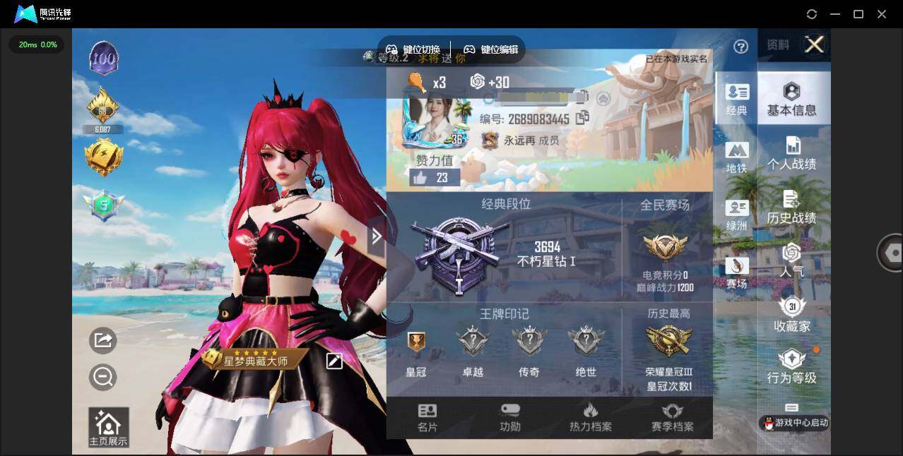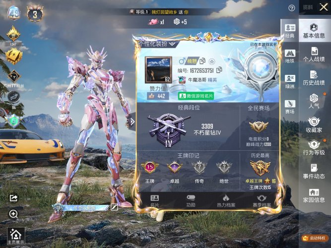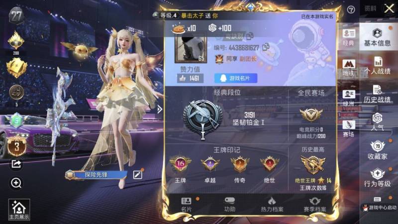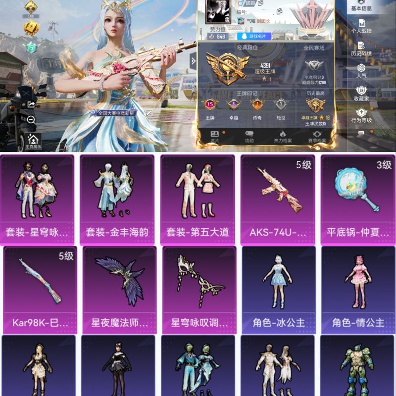 时装数: 127 枪械数: 67 战备数: 45 热门装扮: 绯穹魔姬 稀有枪